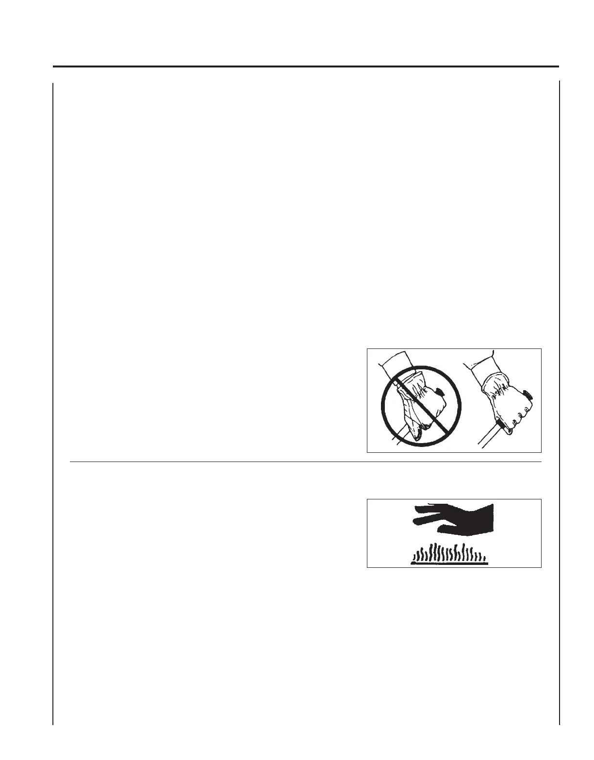 • Keep exhaust area clear of flammable debris. Avoid contact during