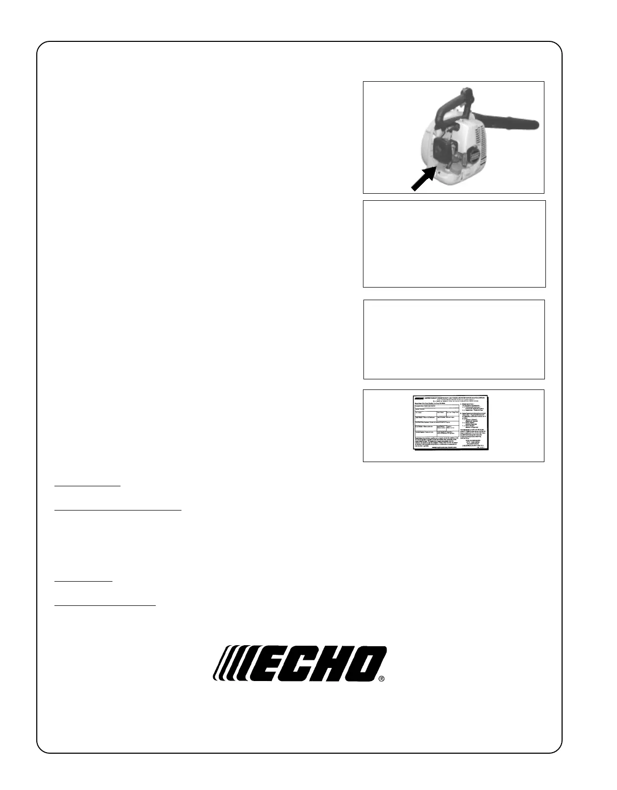 card or register on-line at www.echo-usa.com. Registering provides a