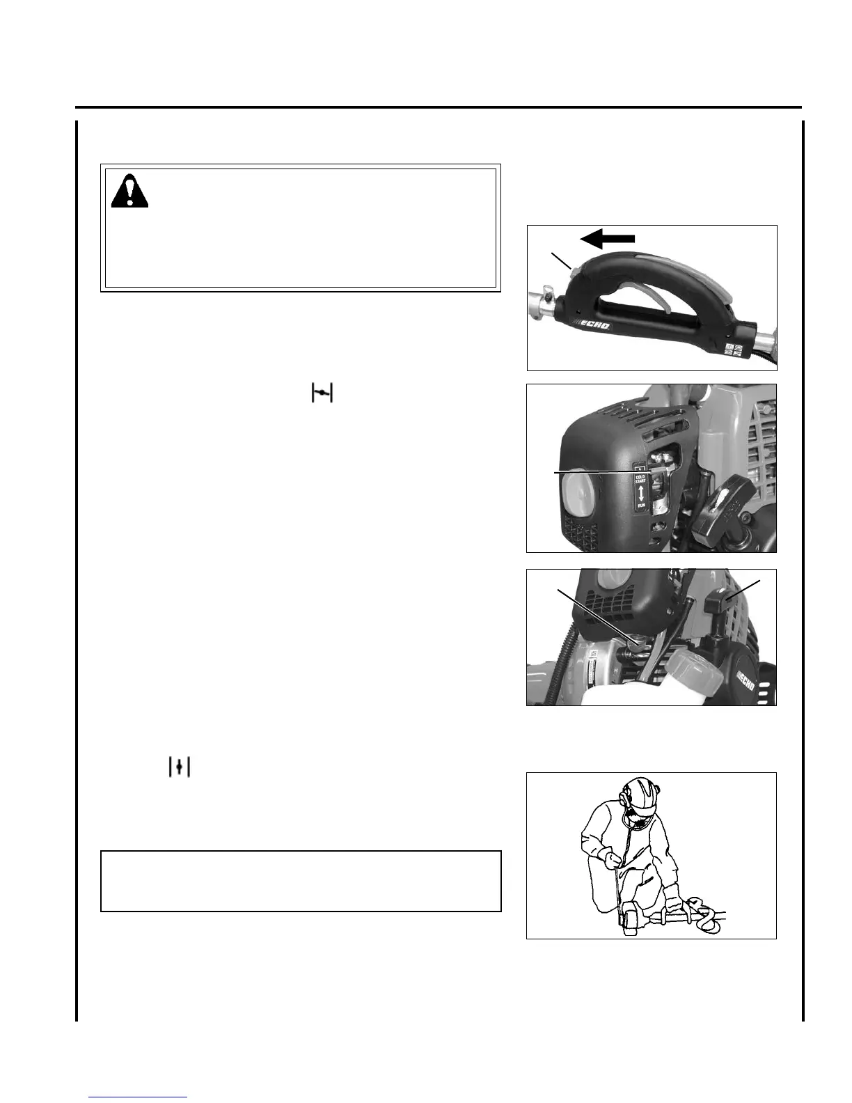 gine starts and runs. Release throttle trigger and allow unit to warm