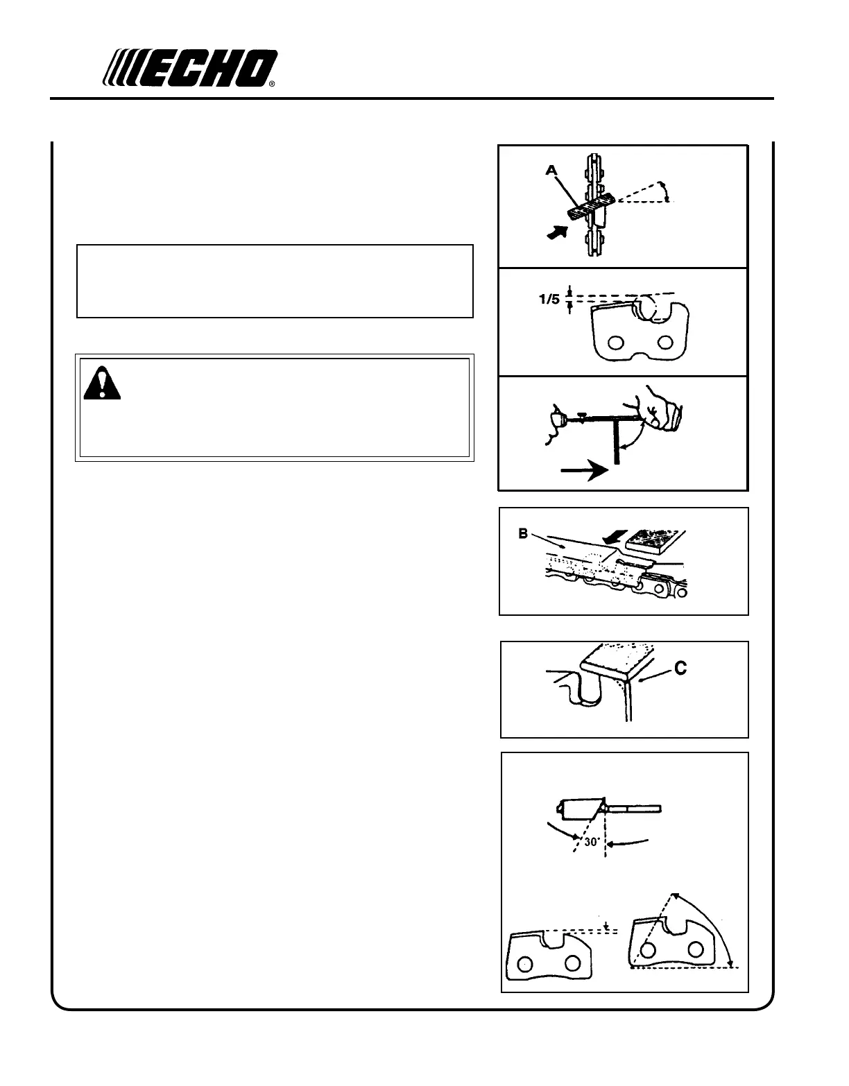 5. Finir l’affûtage en arrondissant le devant de la dent (C) avec la