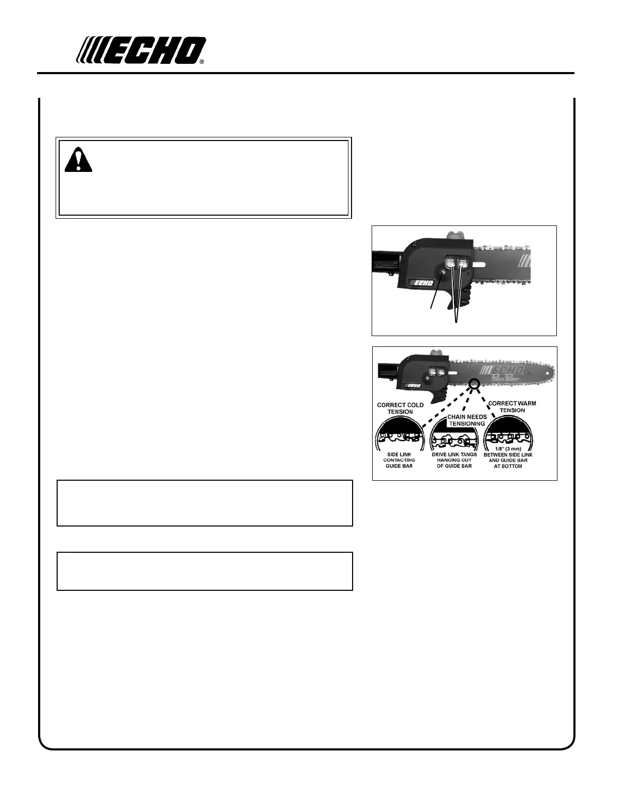 7. When chain is properly tensioned, tighten guide bar nuts securely.
