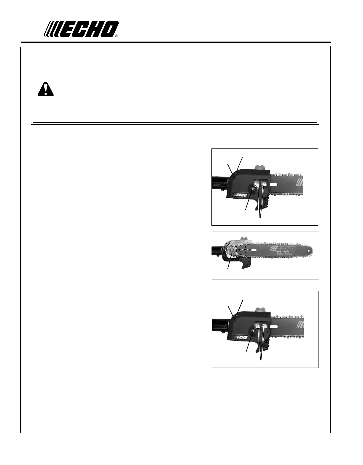 screw (B), and turn saw chain tension adjustment screw (C) coun-