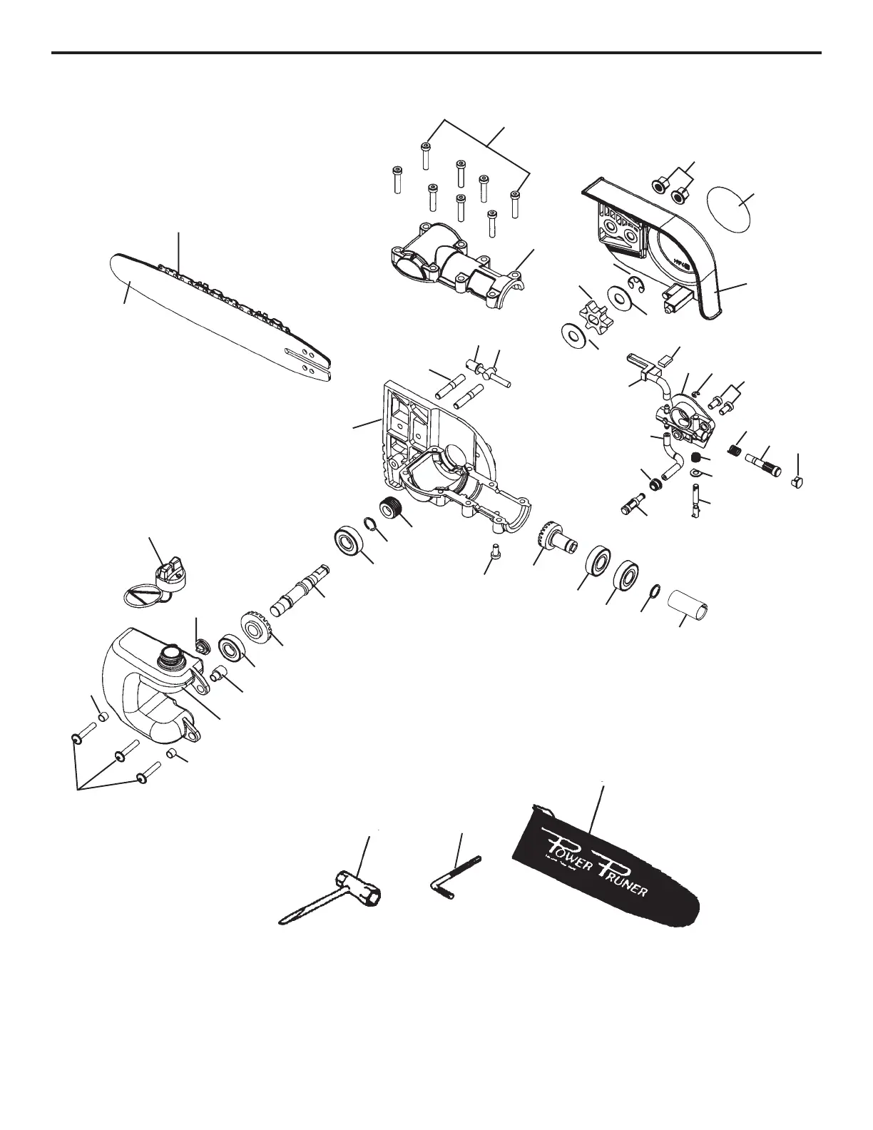 GEARCASE, GUIDE BAR, SAW CHAIN, AUTO OILER, TOOLS