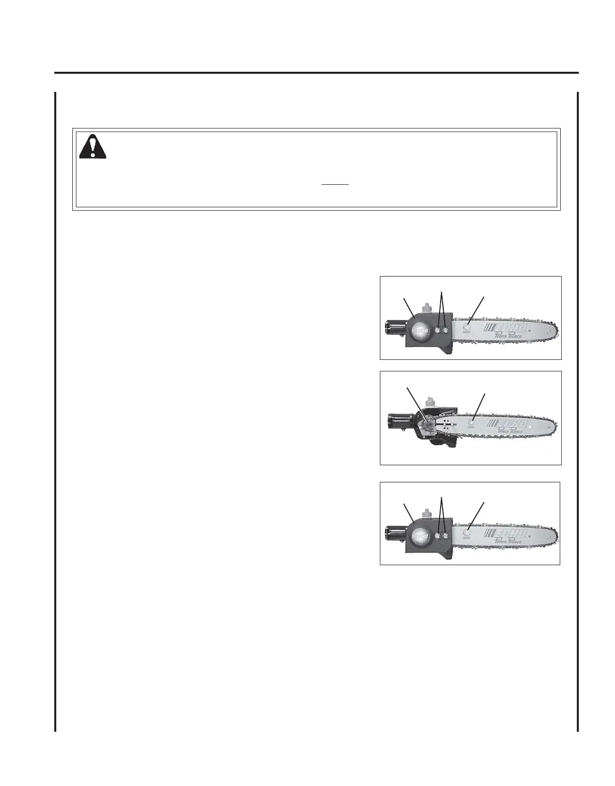 Never try to replace or adjust guide bar and saw chain with engine running. Always disconnect spark plug wire
