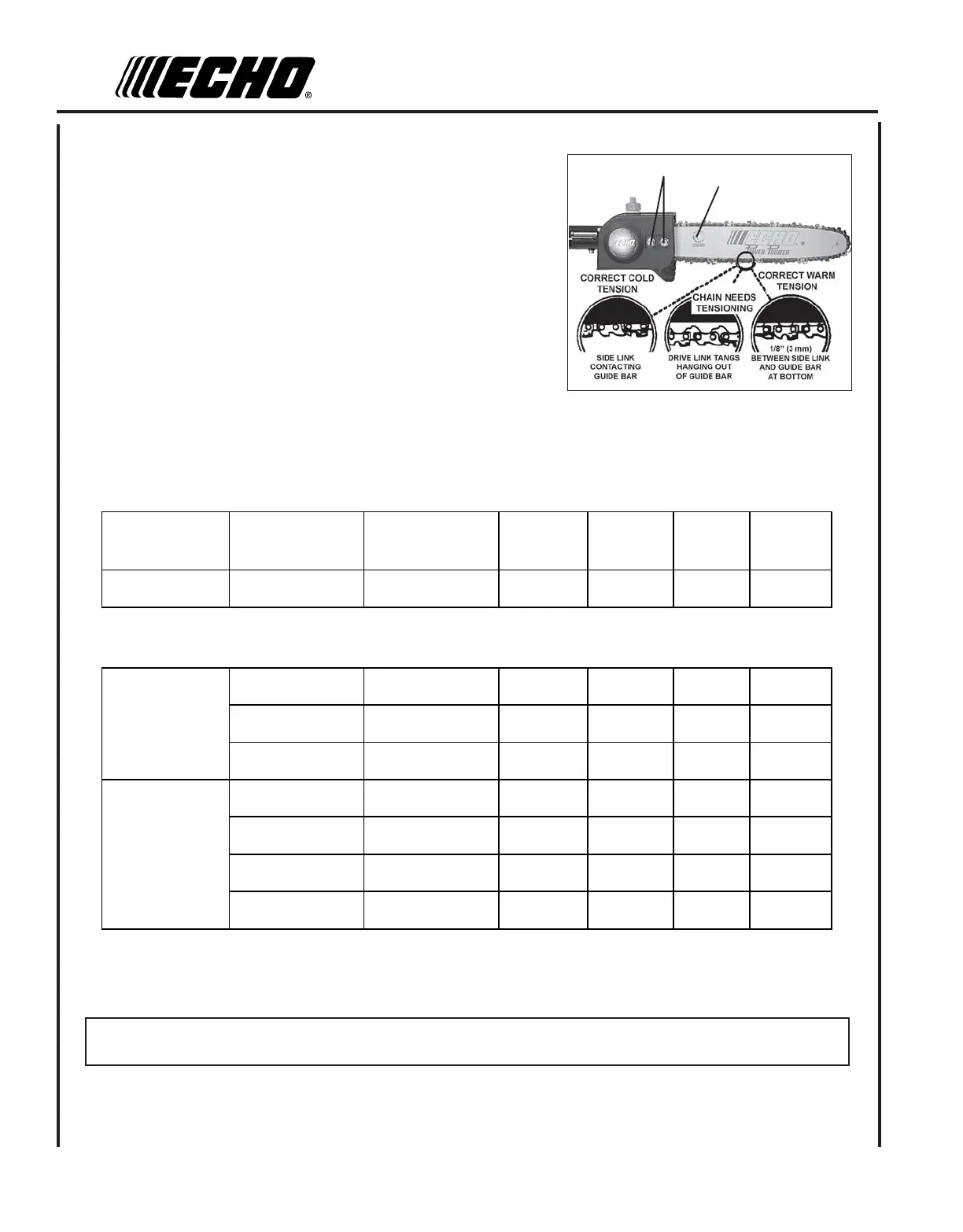 Chain and guide bar gauge size must be identical. Use Bar/Chain combinations shown in table above.