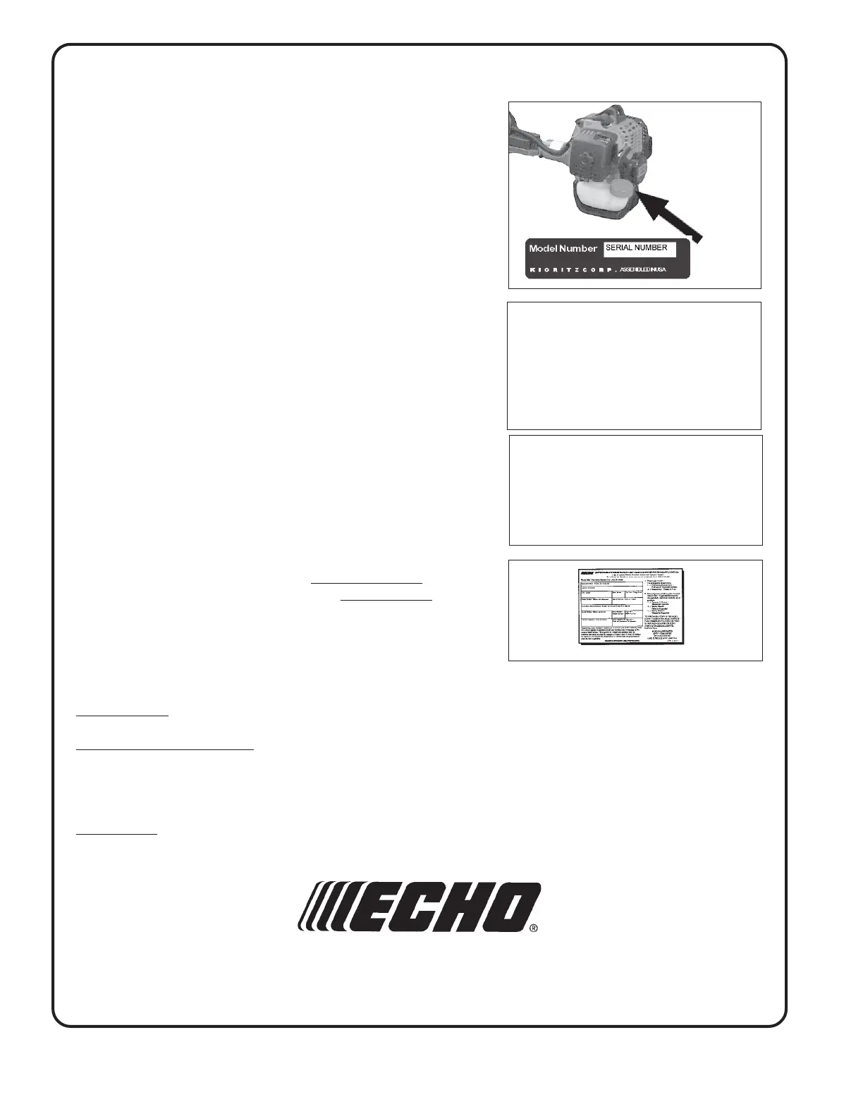 register your ECHO equipment on-line at www.echo-usa.com. Other