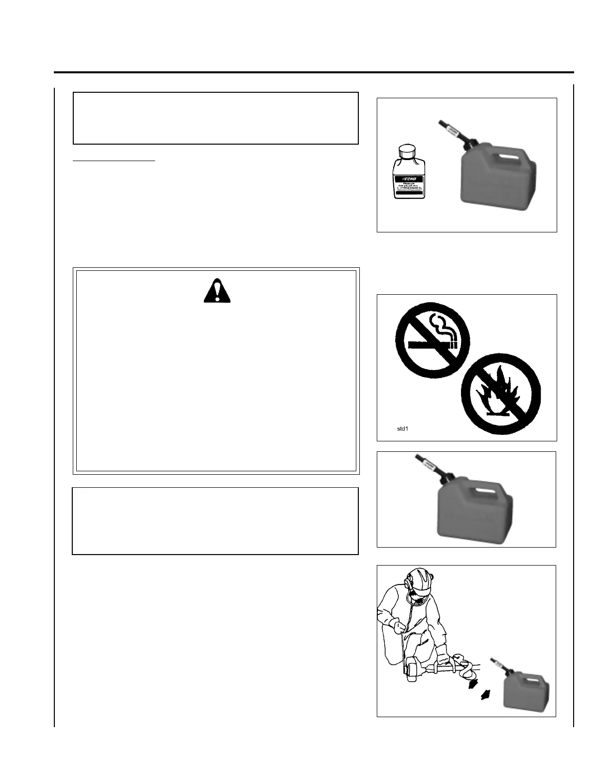 • Fuel tanks/cans may be under pressure. Always loosen fuel