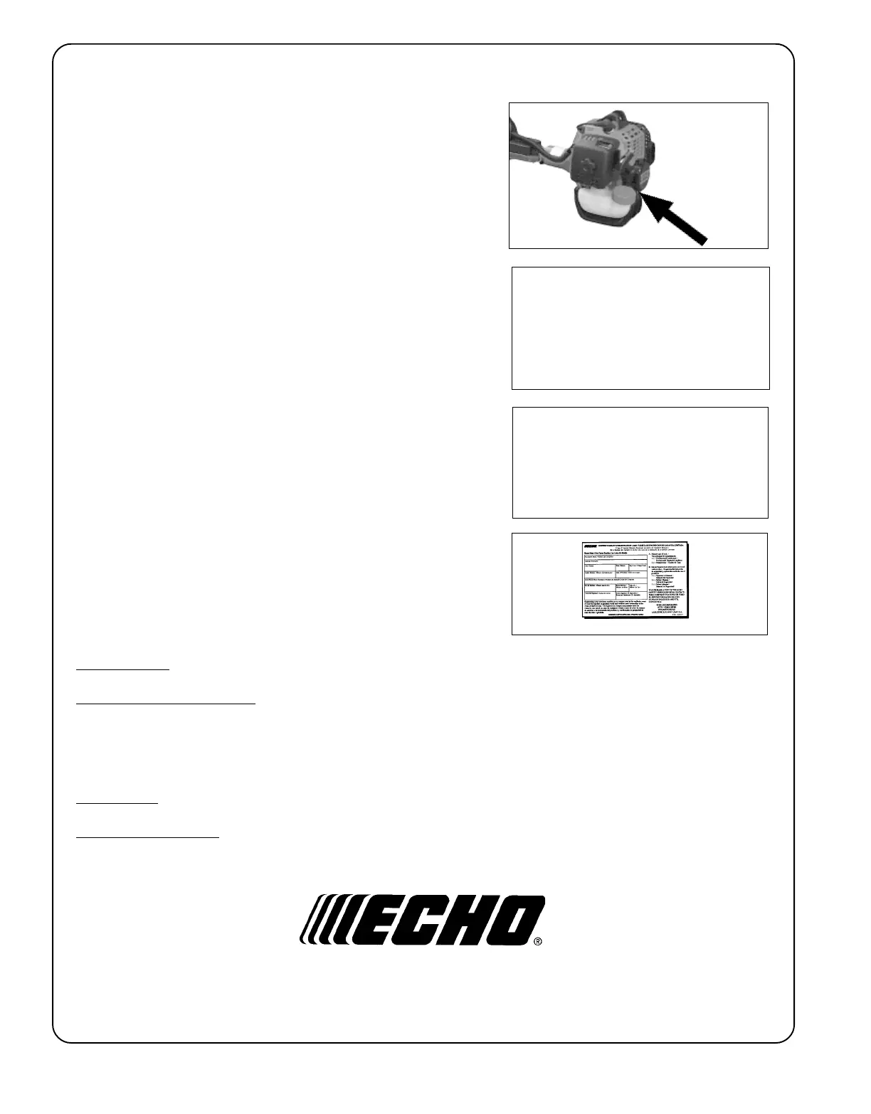 card or register on-line at www.echo-usa.com. Registering provides a