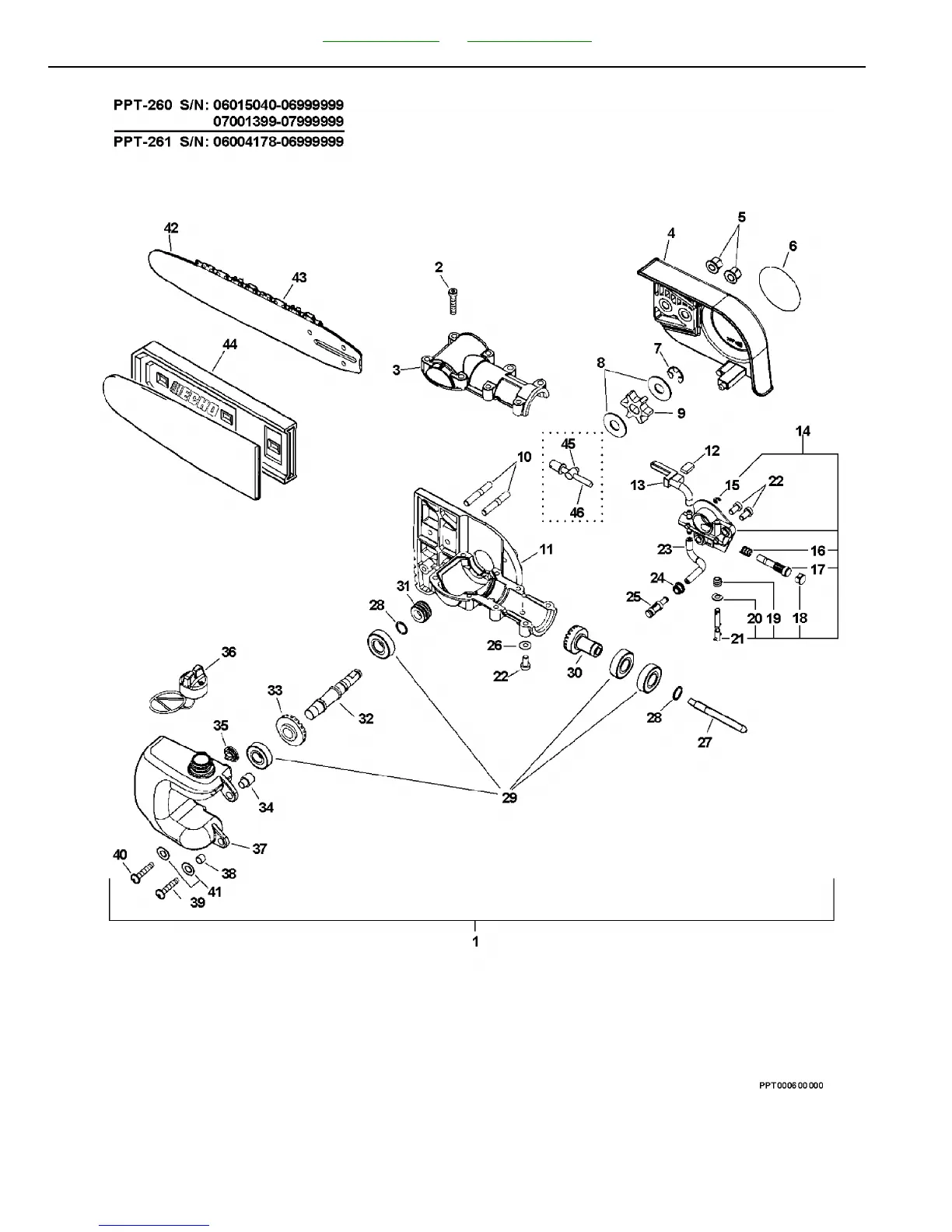 PPT-260 Power Pruner Gear Case, Auto-Oiler, Guide Bar, Chain S/N: 07001399 - 07999999