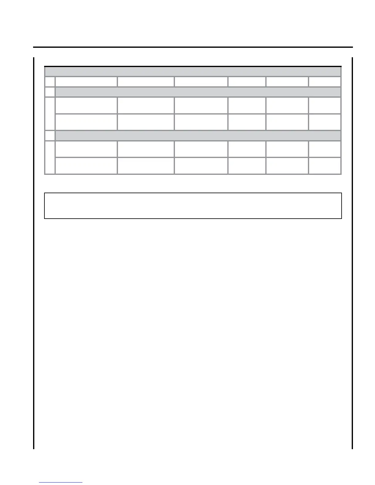 combinations shown in table above.