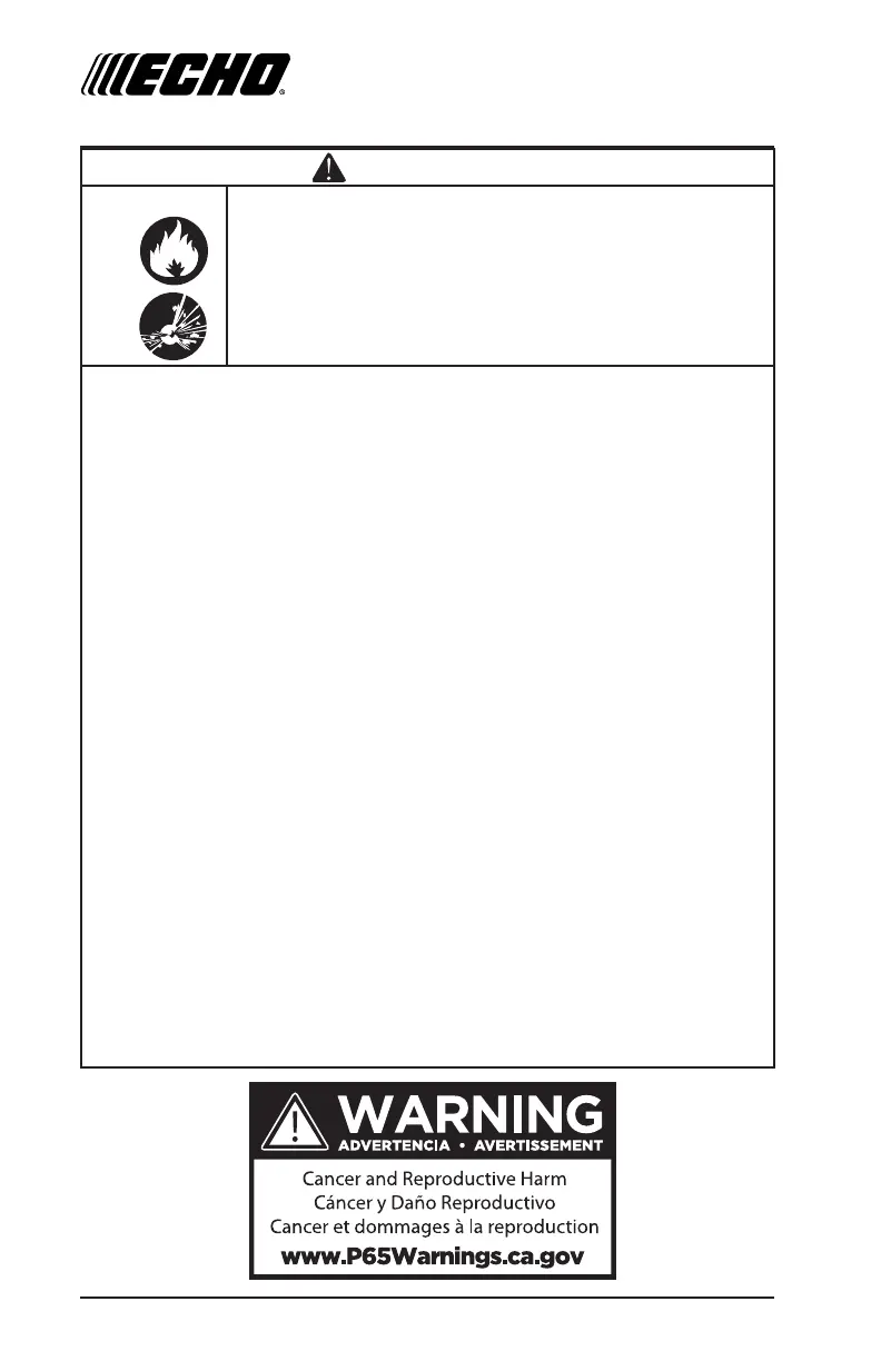 • Tenir le carburant à l’écart des étincelles, des ammes nues, des veilleuses, de la