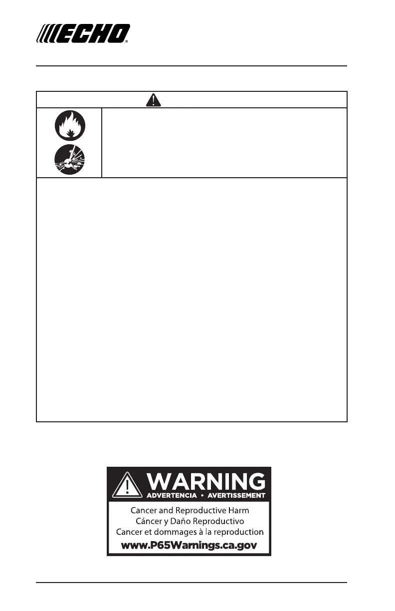 • Keep fuel away from sparks, open ames, pilot lights, heat, and other ignition