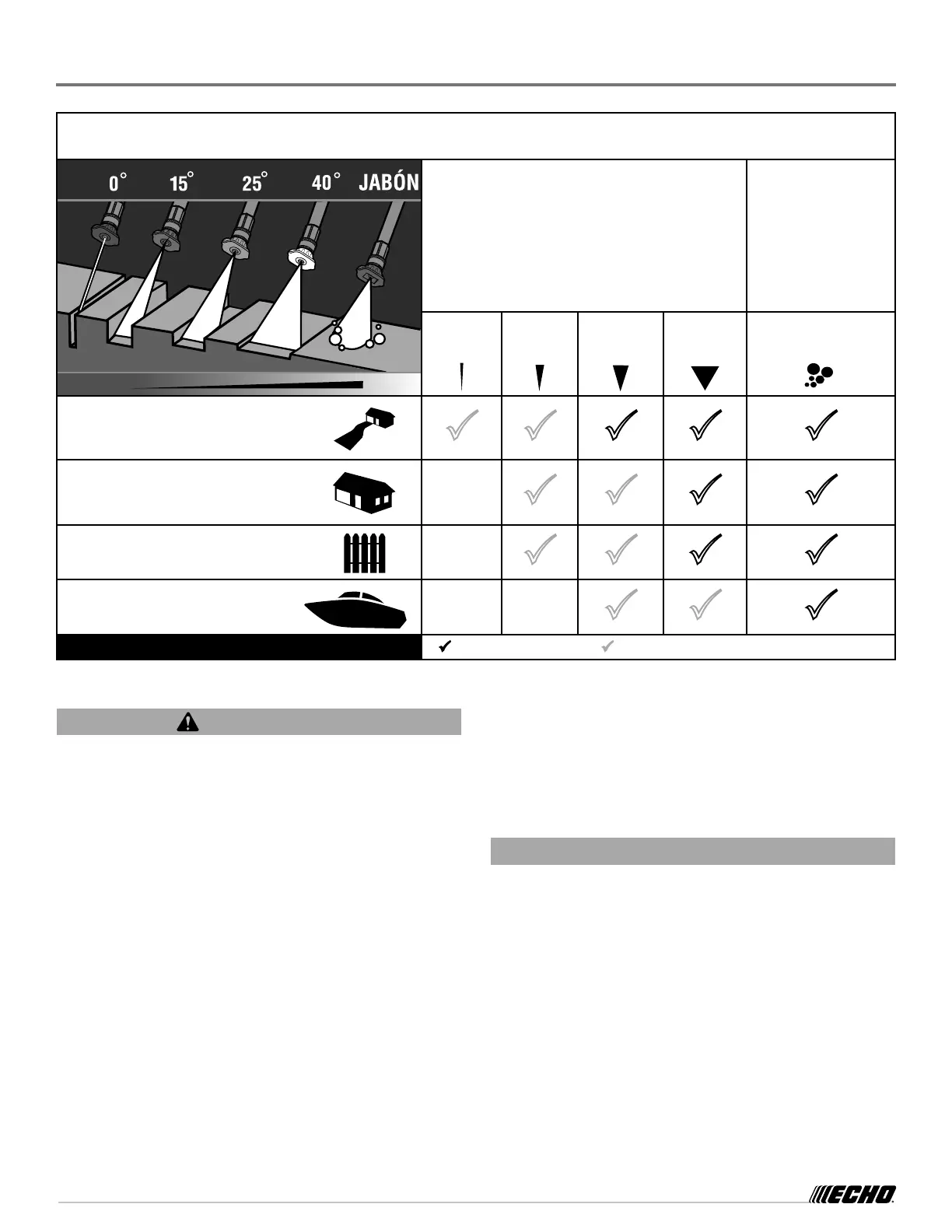 Boquilla recomendada Usar con cuidado en ciertas aplicaciones