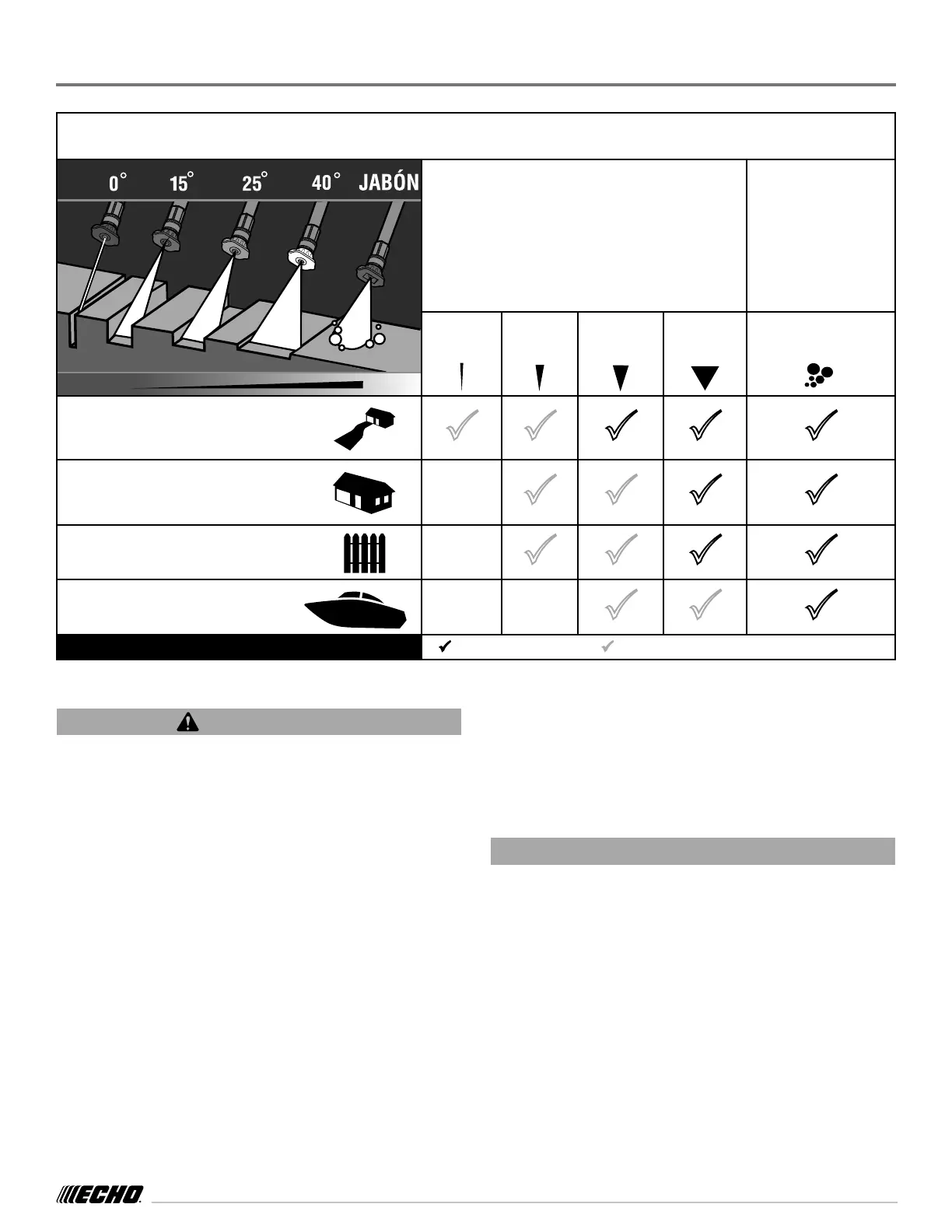 Boquilla recomendada Usar con cuidado en ciertas aplicaciones