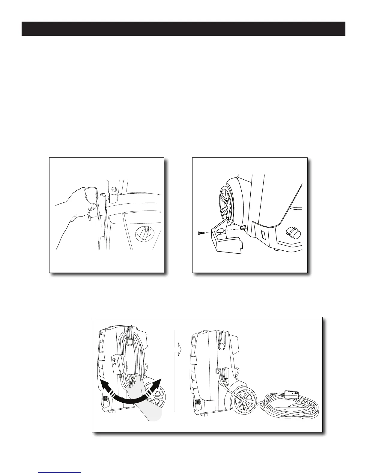 NOTE: The hose reel is only for storing the high pressure hose. The hose must be completely removed from