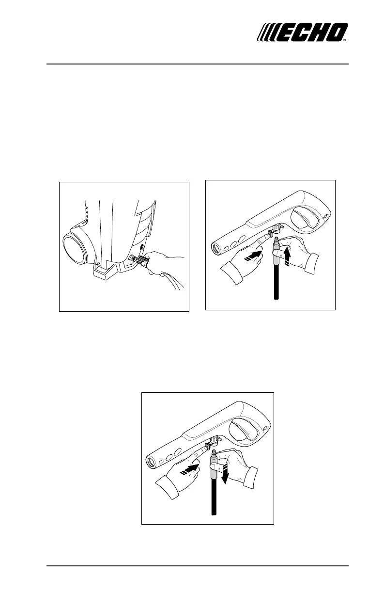 • Connect the other end of the high pressure hose to the spray gun by inserting