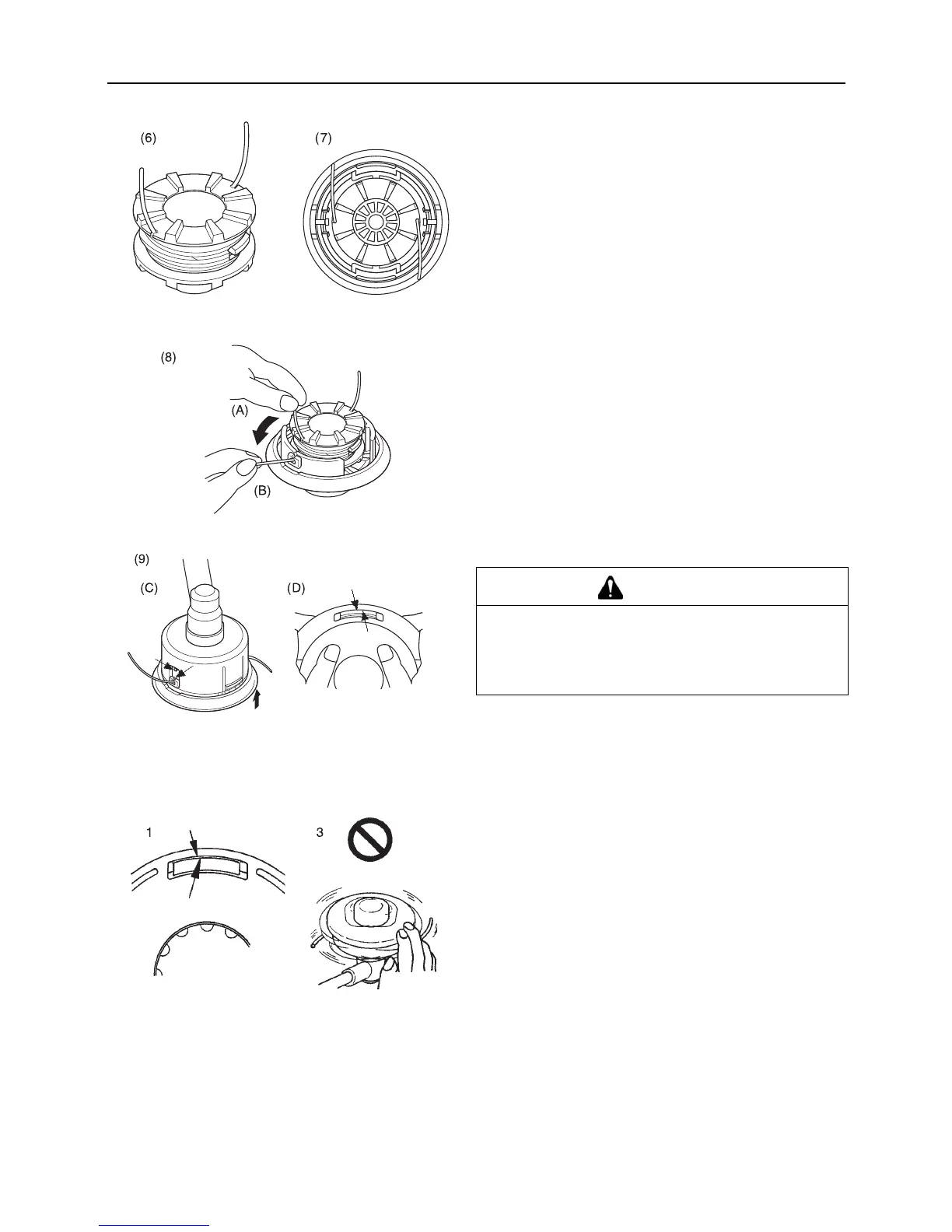 8. Saque el hilo de la tapa. (A) Saque el hilo de su "ranura res-