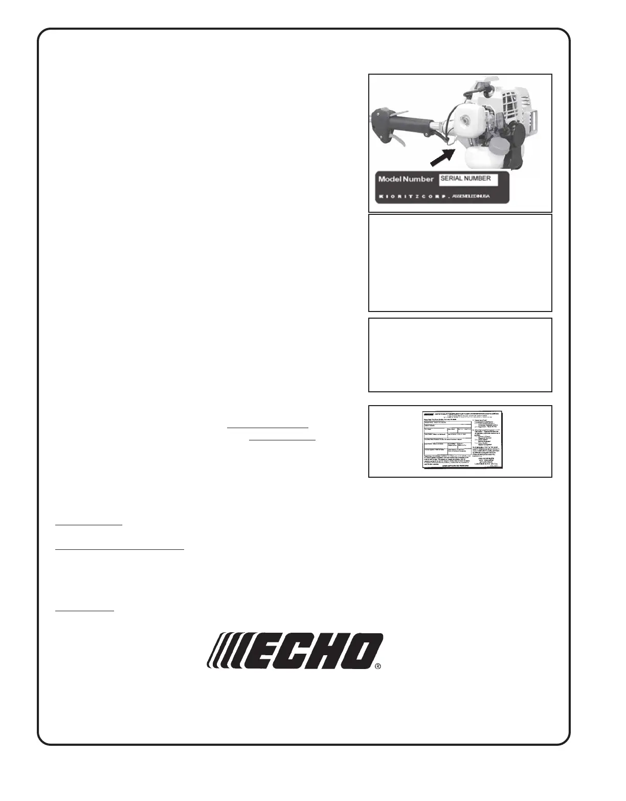 register your ECHO equipment on-line at www.echo-usa.com. Other