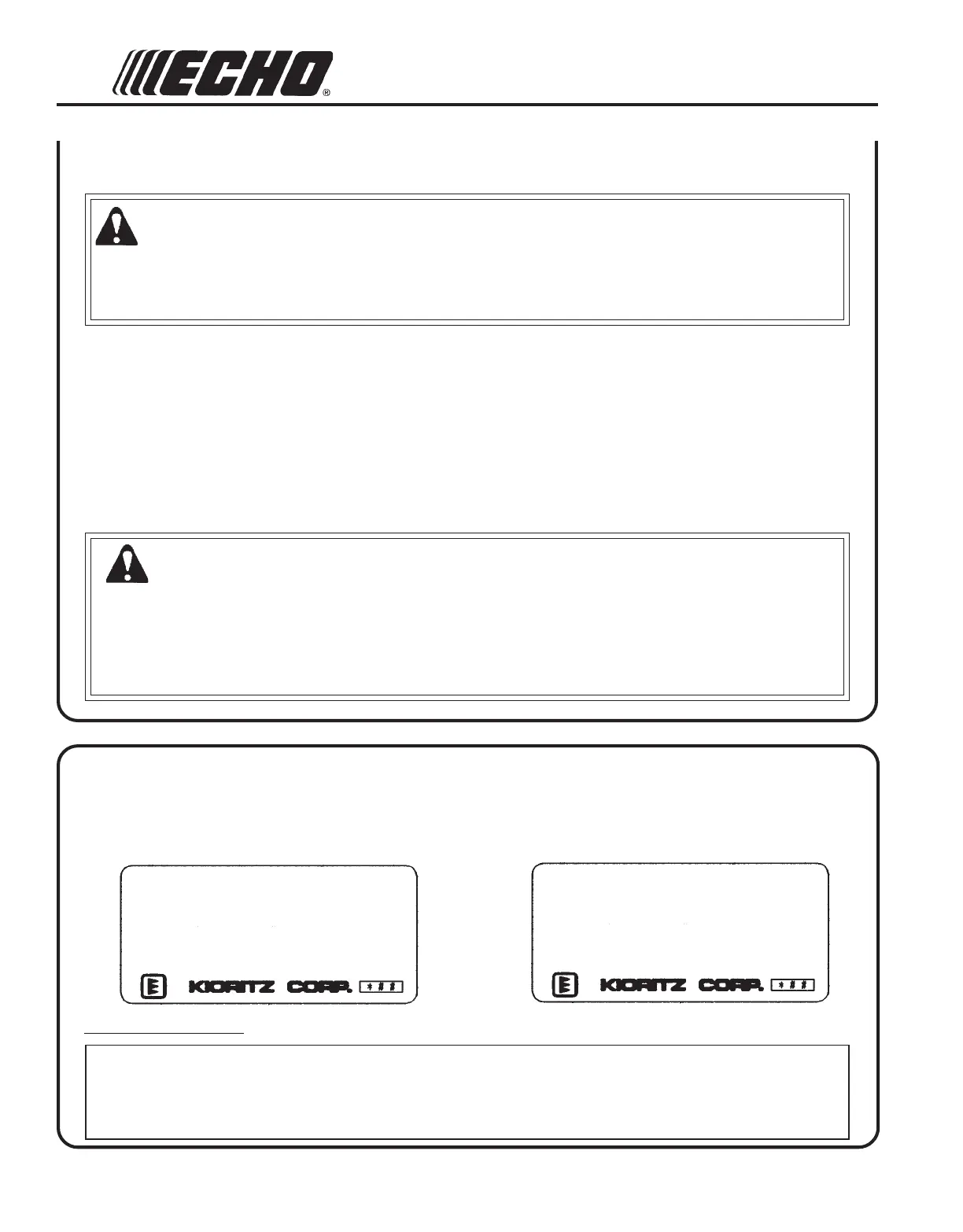 Use only ECHO approved attachments. Serious injury may result from the use of a non-approved attachment