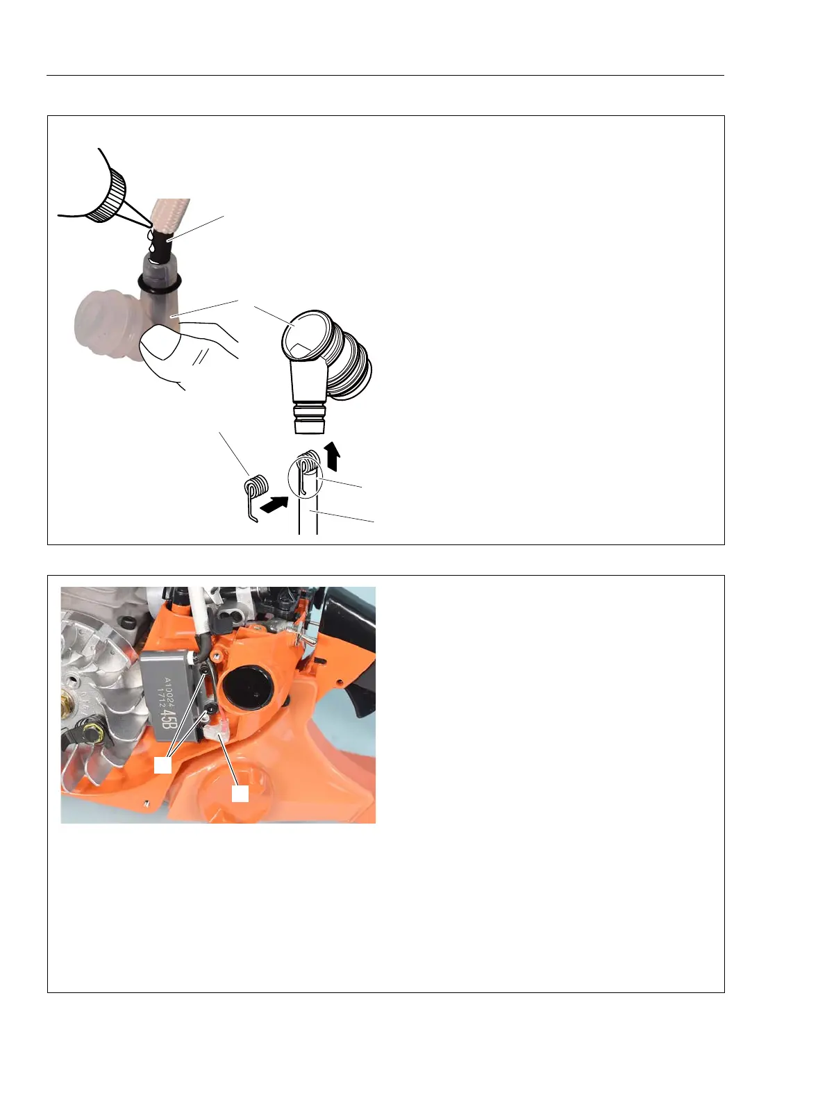 gaps“). Tighten two bolts (B). Reinstall fan cover,