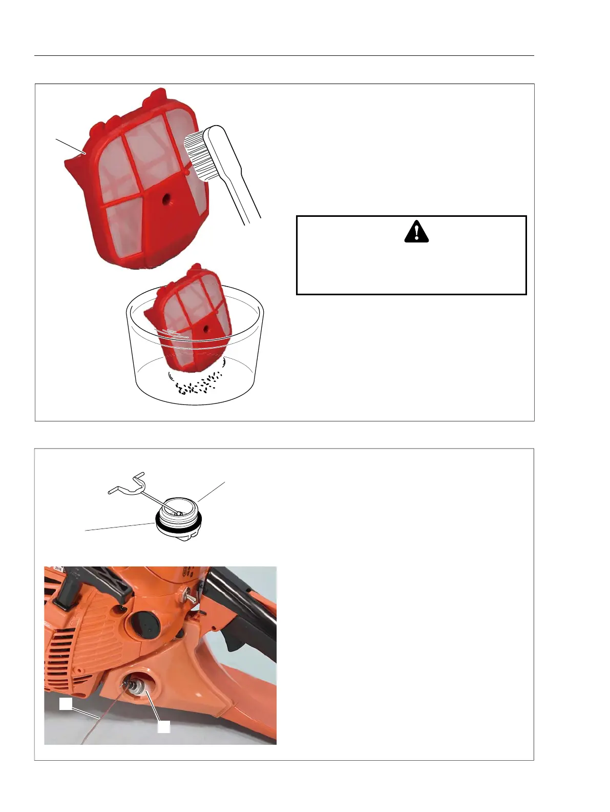 2. Inspect air fi lter (A). If blocked with dirt or dust,