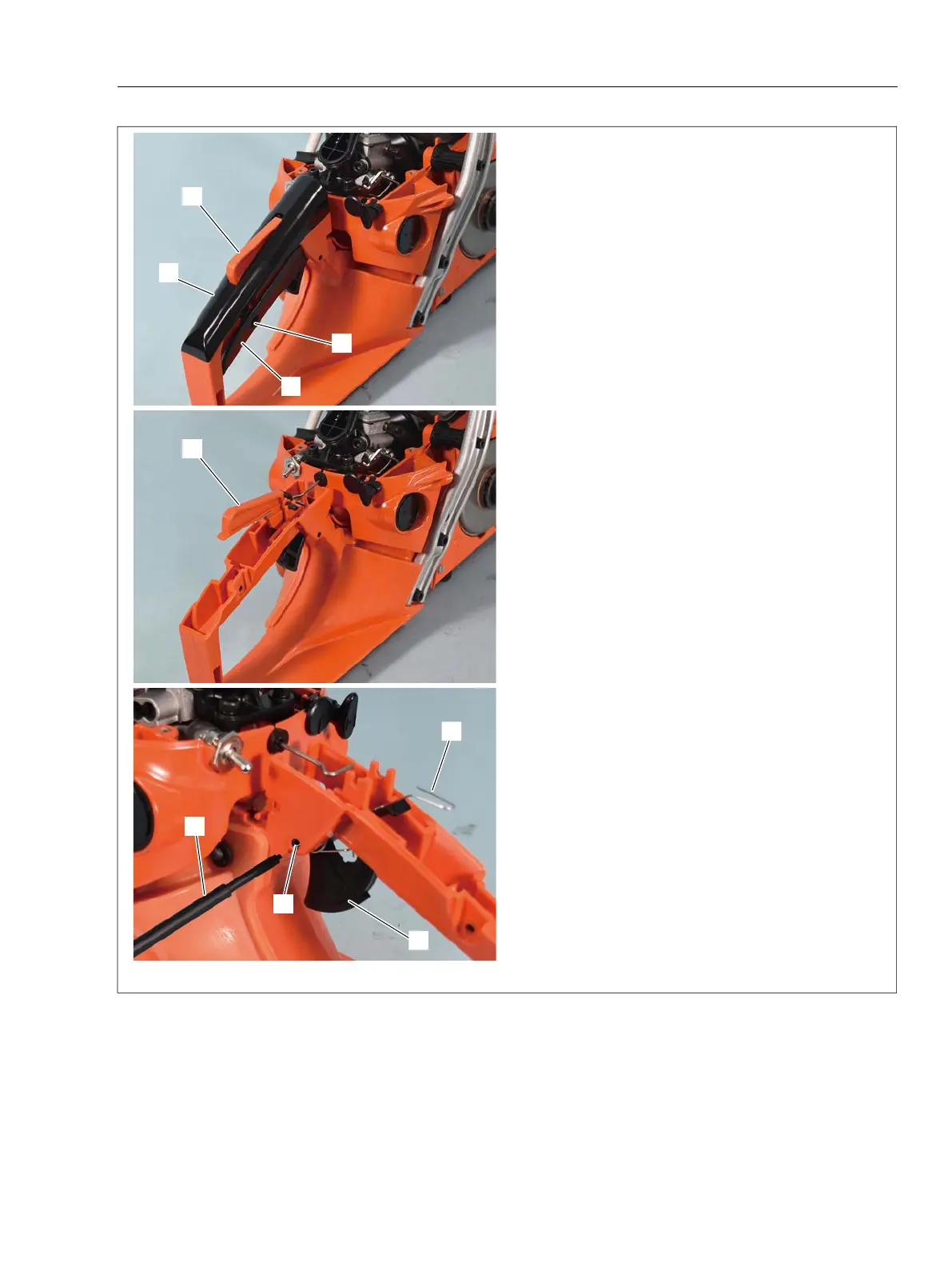 2. Inspect grip (B), rear handle cover (C) and throt-