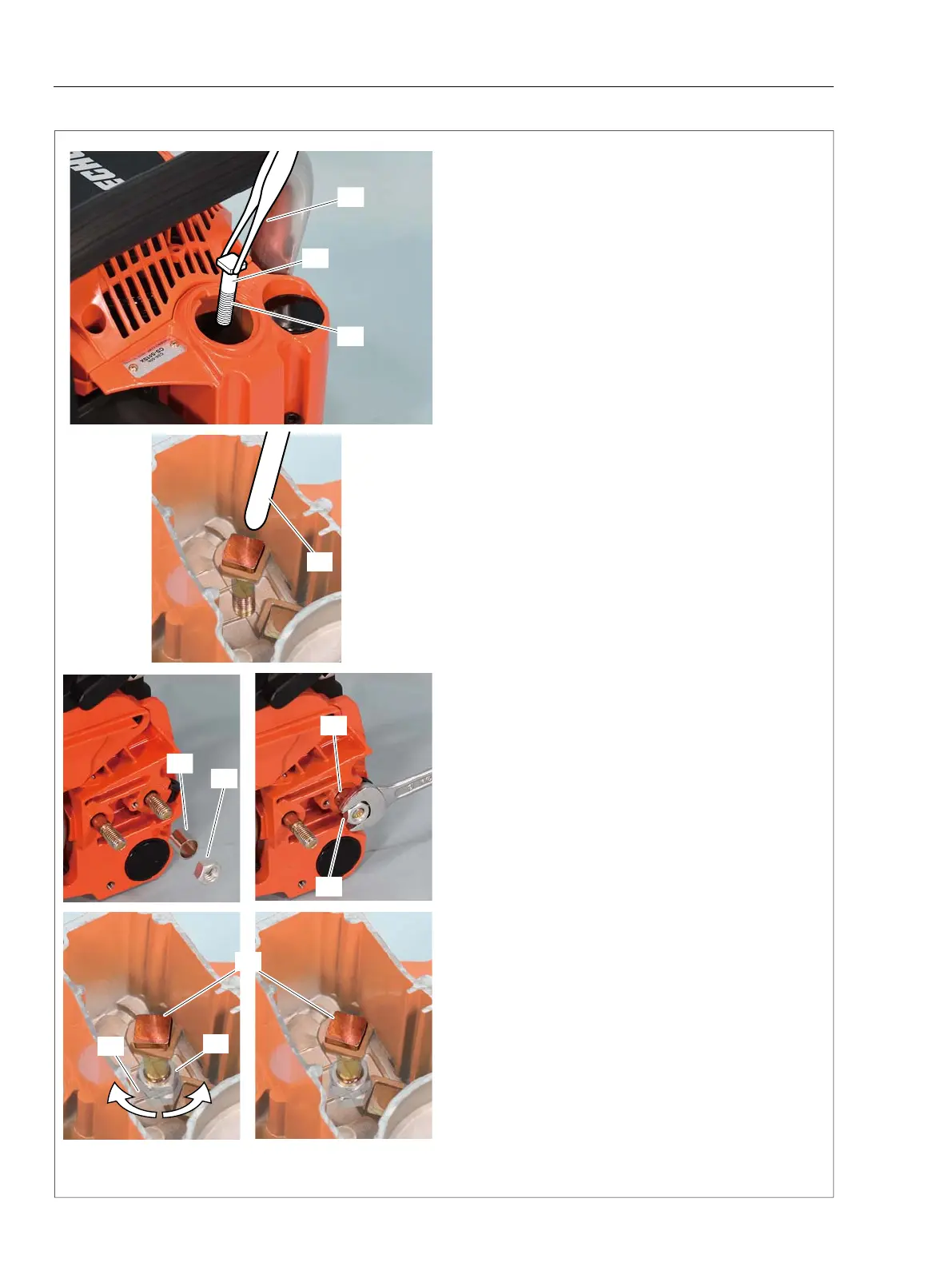 Thread M8 nut (E) clockwise onto stud. Turn nut
