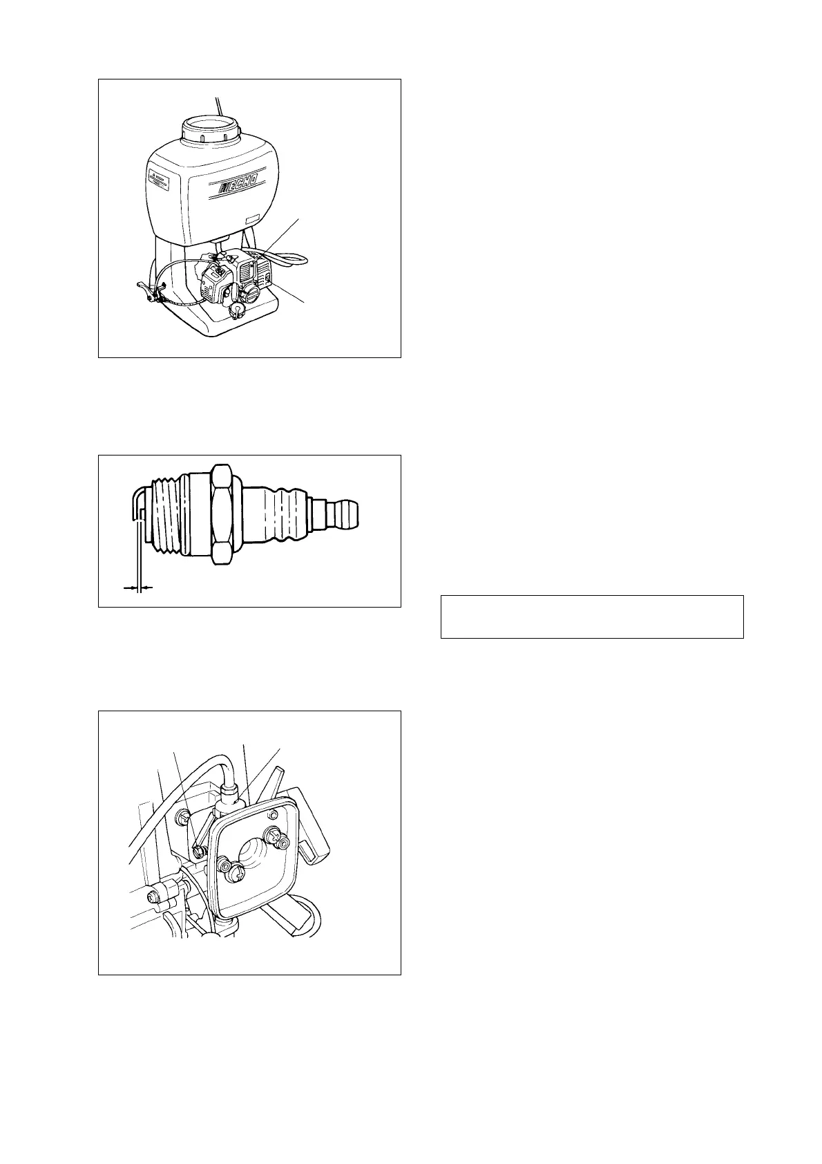 • Check plug gap. Corrct gap is 0.6 to 0.7 mm.