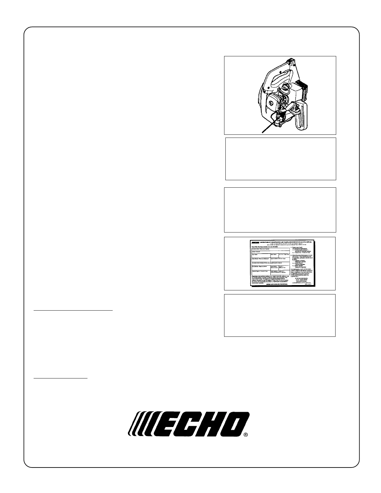 Operator's Manual made payable to ECHO, INCORPORATED. State on a sheet of paper model number and serial number