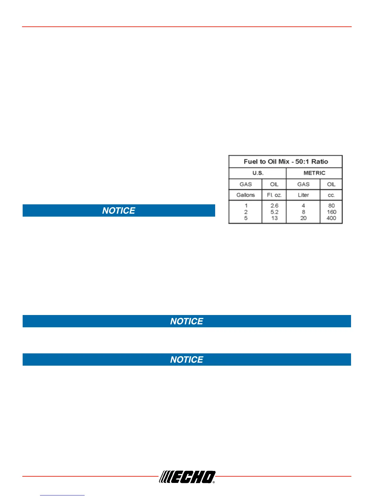 Stored two-stroke fuel may separate. ALWAYS shake fuel container thoroughly before each use.