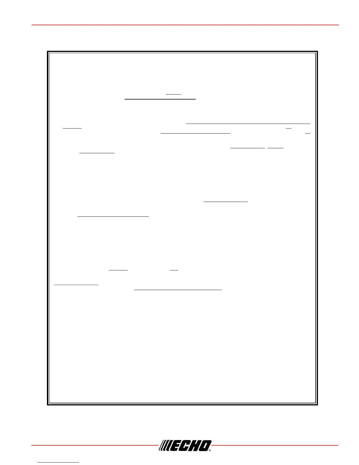It is a dealer’s and/or customer’s responsibility to complete and return the warranty registration card supplied with your ECHO product or by visiting