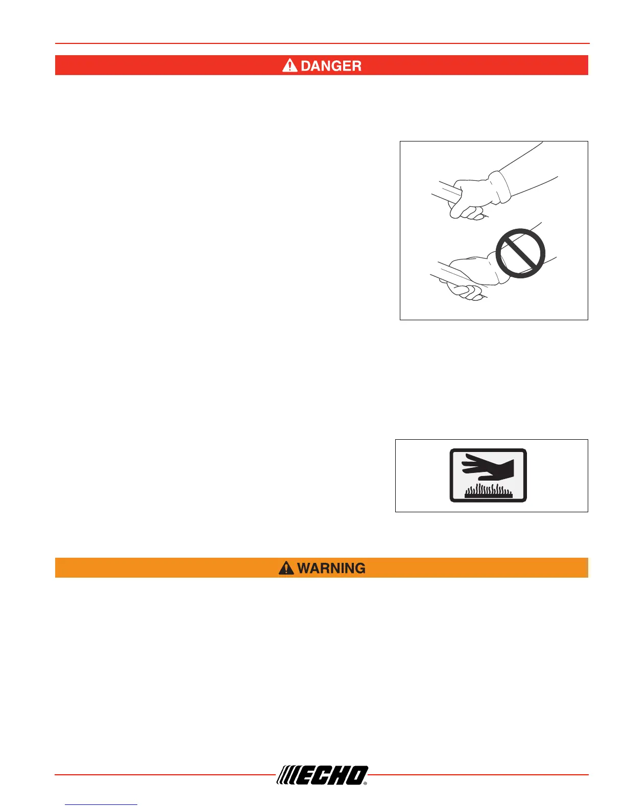 attachments or accessories which have not been tested and approved by ECHO. Read and comply