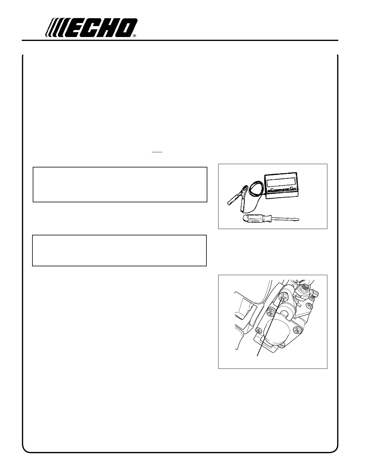 Tools required: Screwdriver, tachometer (Echo P/N 99051130017)