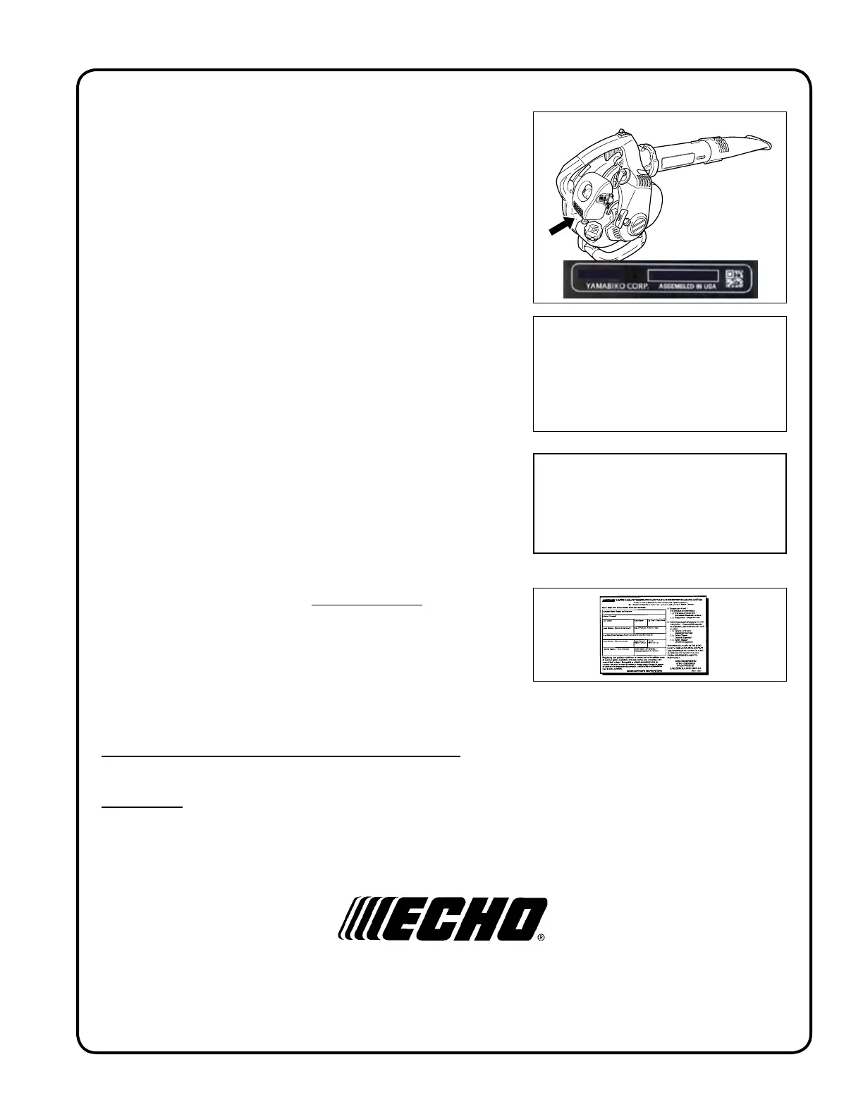 usa.com or by contacting ECHO Inc., 400 Oakwood Road, Lake Zurich, IL 60047 (800-673-1558). Always check the