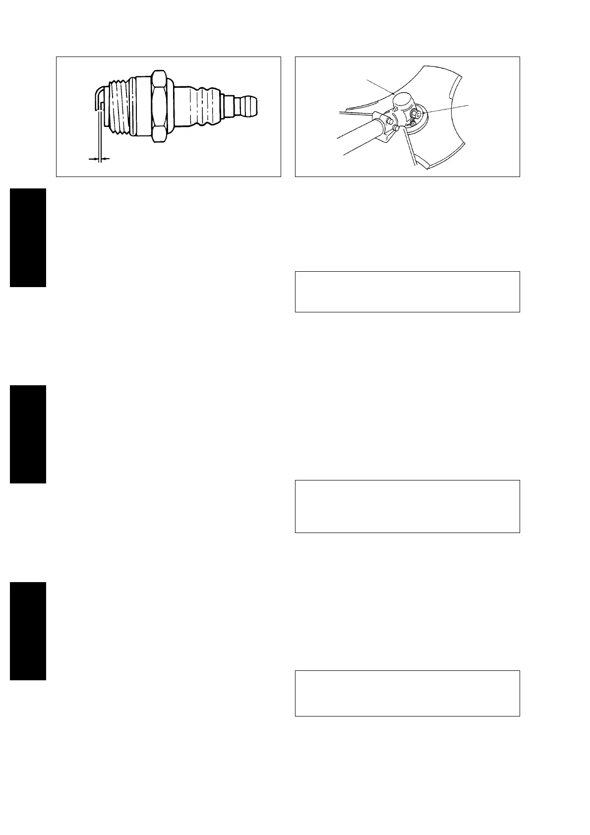 • Check plug gap. Correct gap is 0.6 to 0.7 mm.