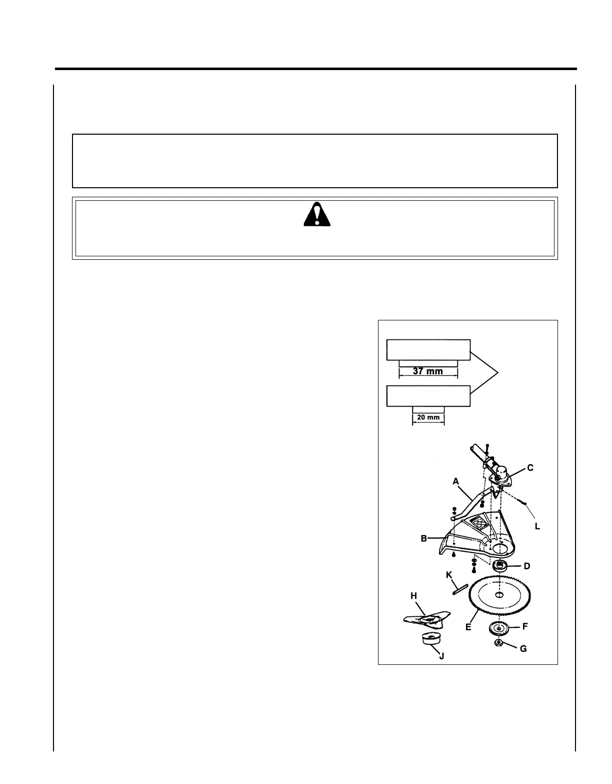 3. Install upper plate (D) on splined PTO shaft. Blade installation
