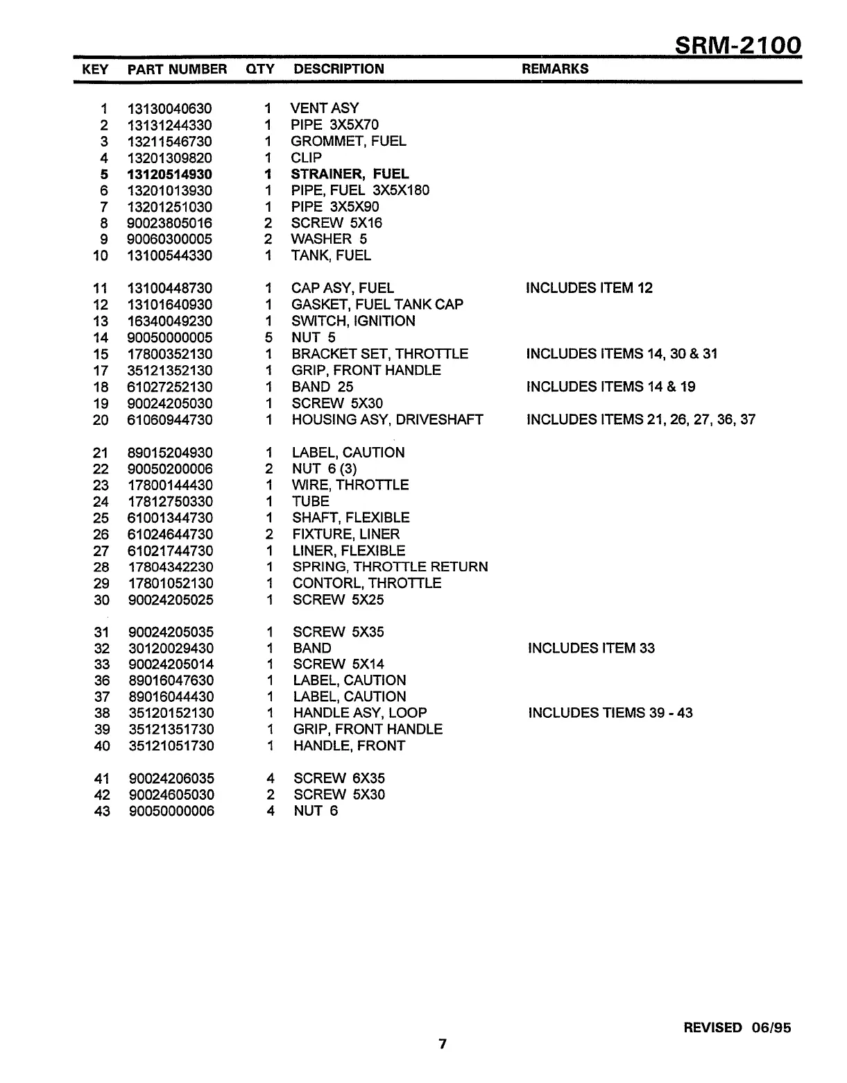 Echo SRM-2100 - PARTS CATALOG SERIAL NUMBER 001001 THRU 159490