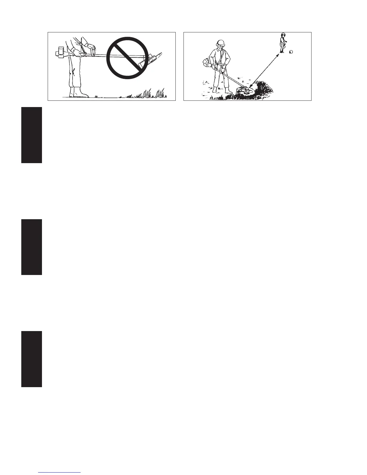 workers outside 15 m radius for brushcutters/grasstrimmers.