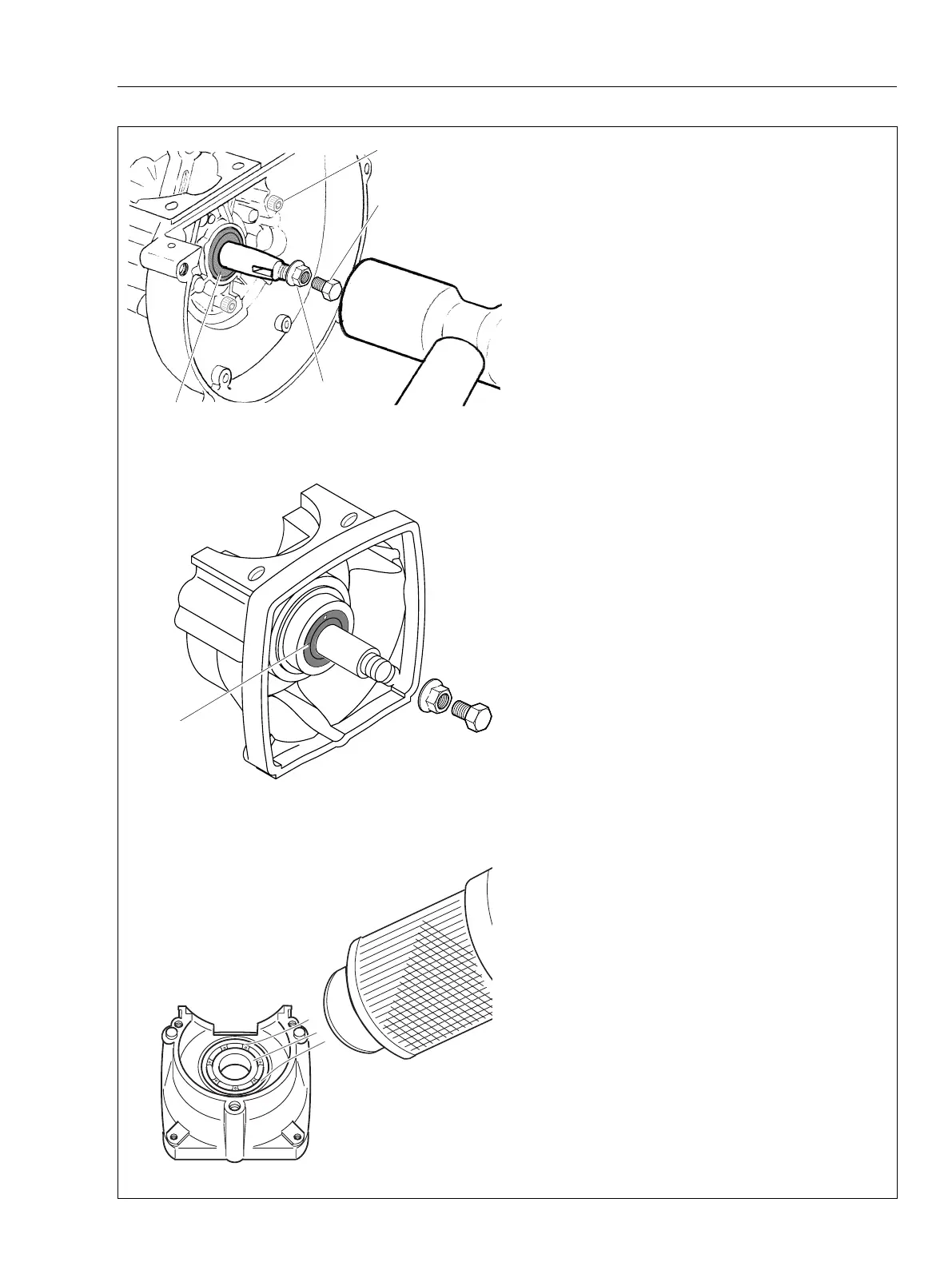 5. Thread flange nut (C) on crankshaft 3 turns on