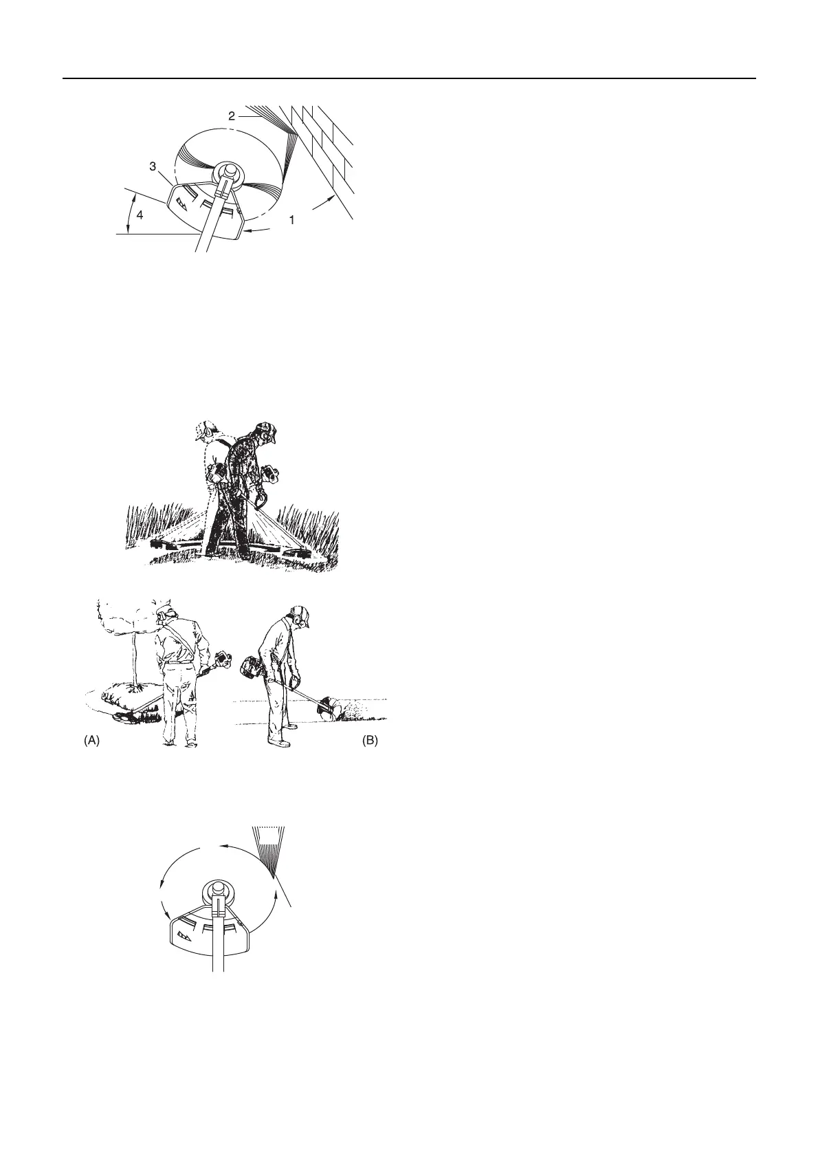 desbroce, sujete el equipo inclinado en un gran angulo en una