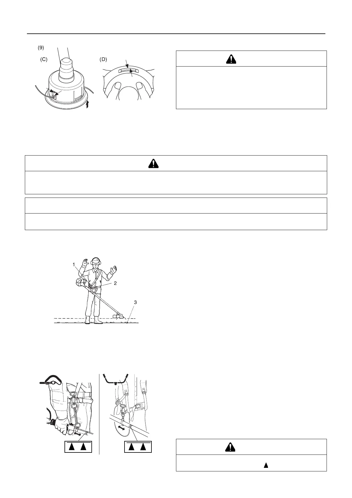 Do not use the unit if your feet can reach the cutting attachment when the unit is attached to the harness.