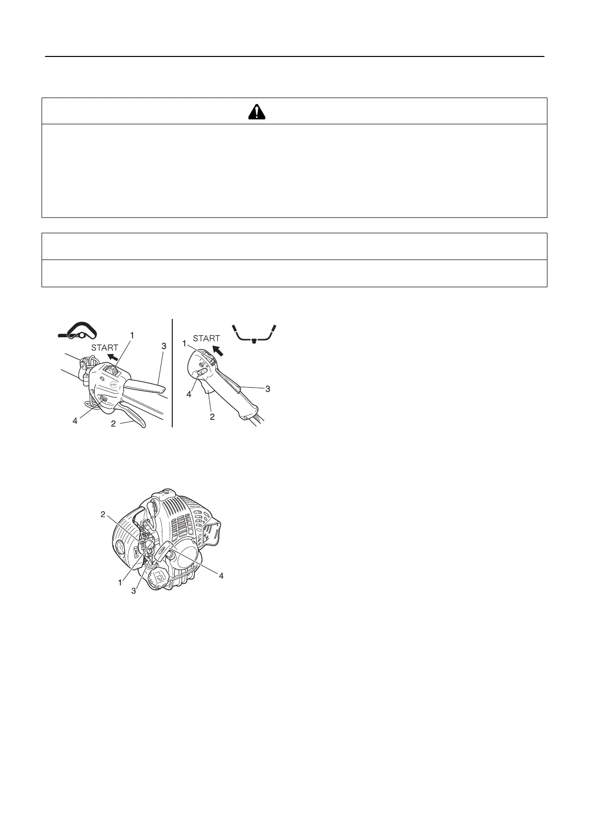 When starting engine using throttle latch, cutting attachment rotates. After engine starts, pull throttle trigger slightly