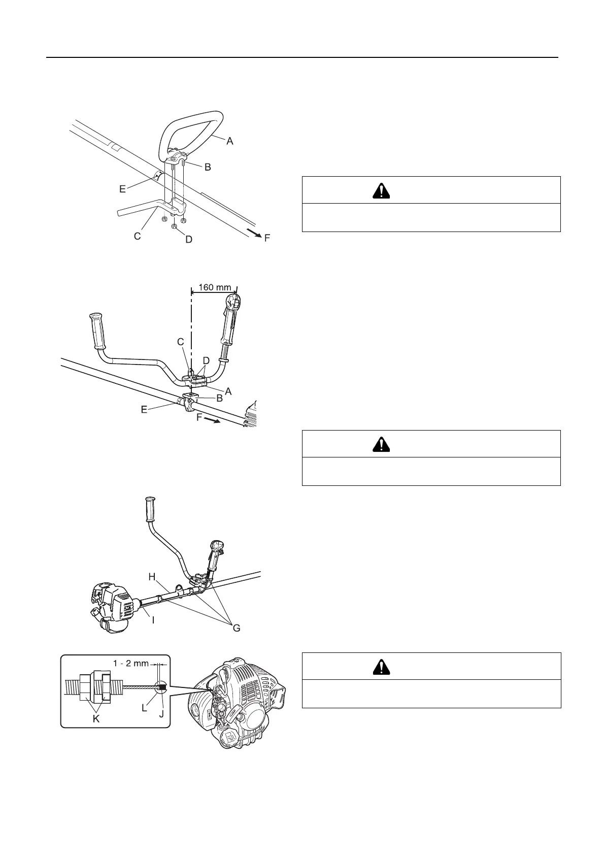 del filo (J) sul lato del carburatore (L) a 1 -2 mm.