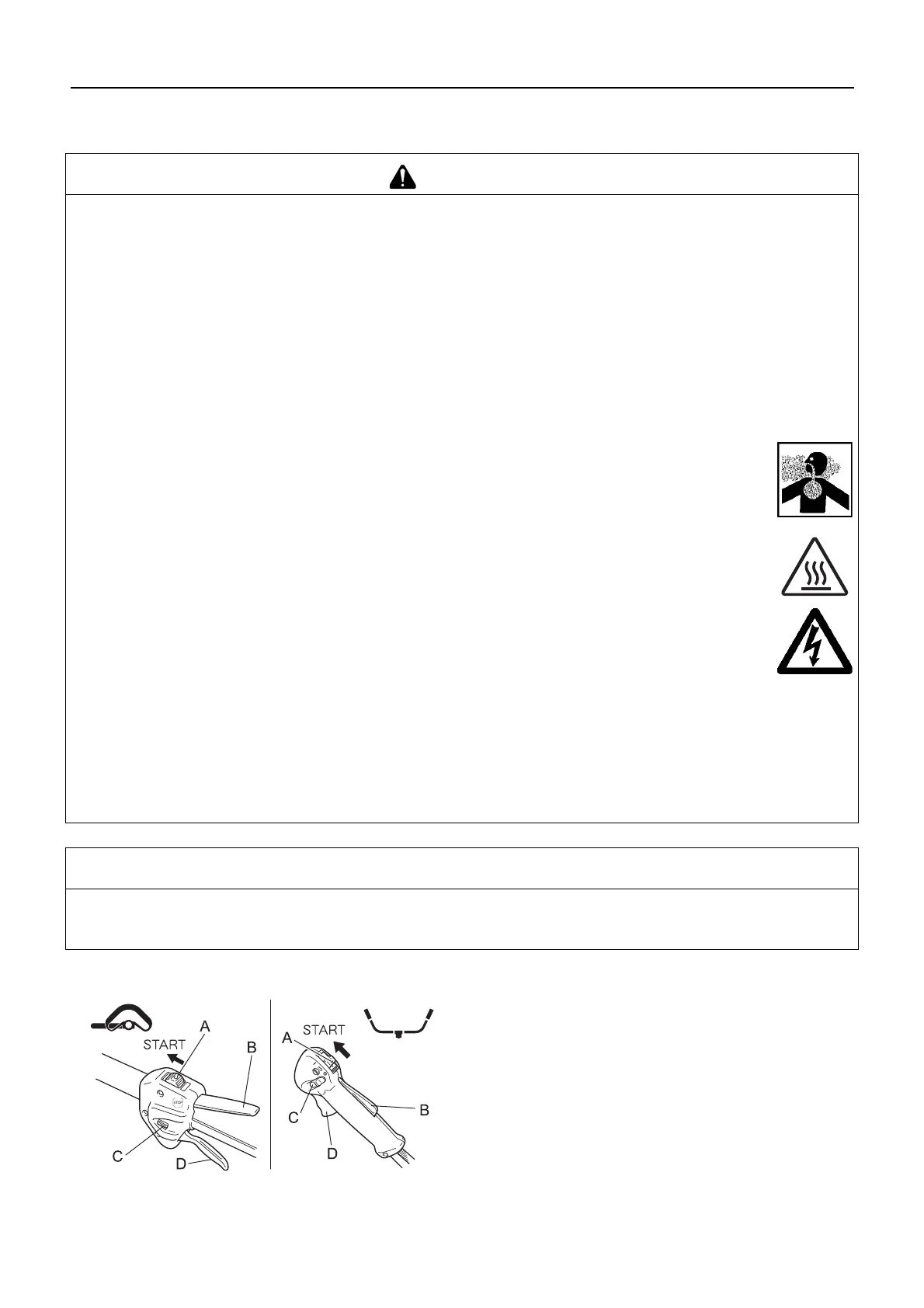 I gas di scarico provenienti dal motore contengono gas tossici. Non utilizzare il prodotto in ambienti
