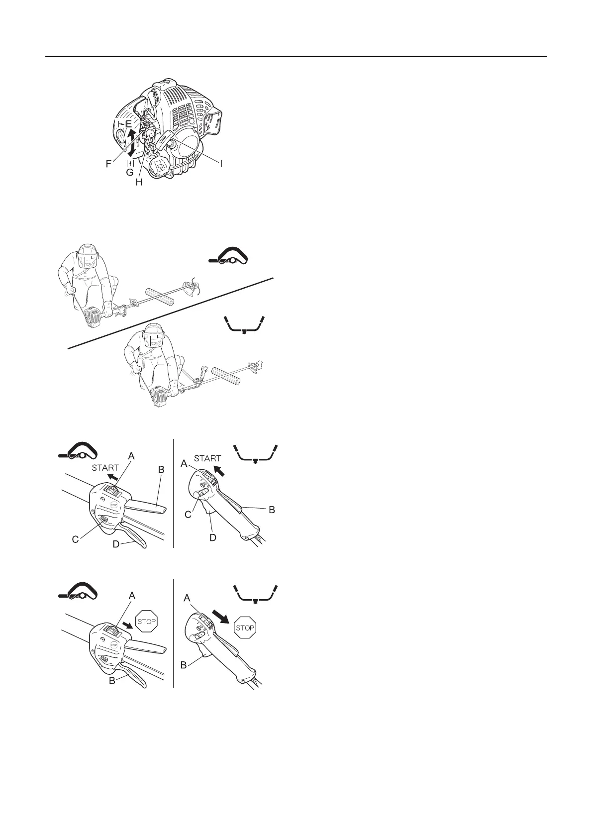 2. Assicurarsi che la leva del gas (D) sia in posizione di folle.