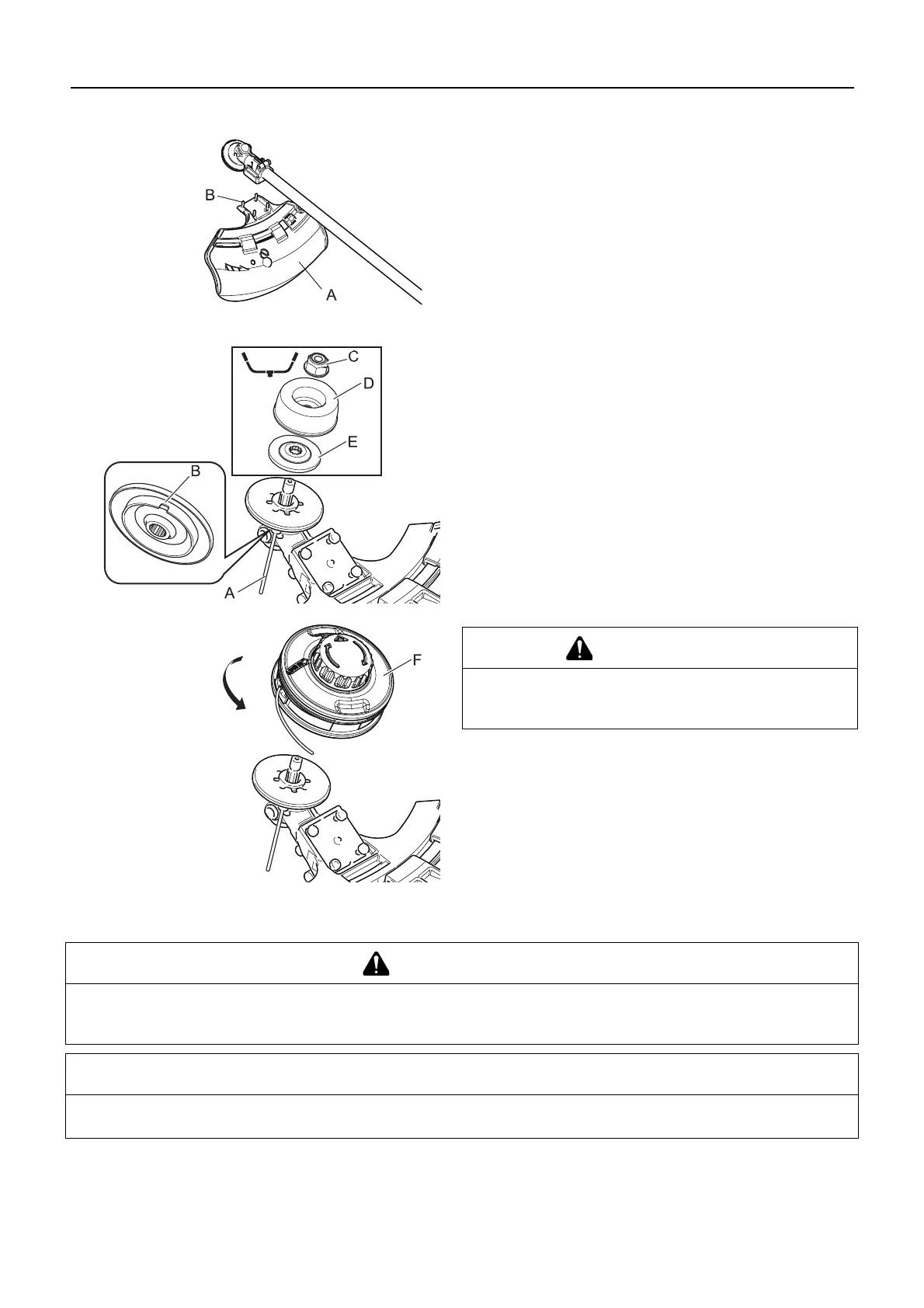 4. Enrosque el cabezal de corte (F) en el eje (en sentido con-