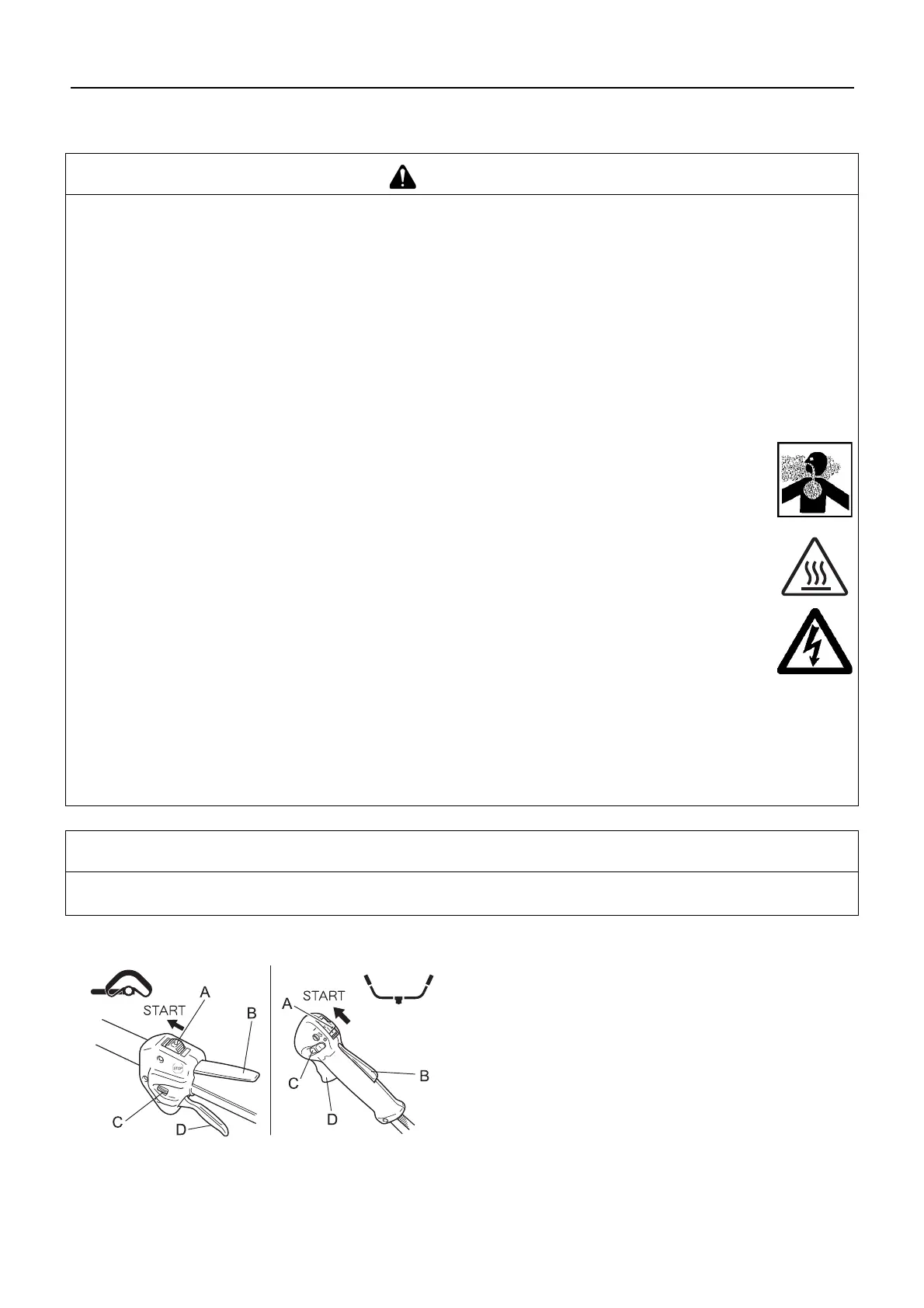 When starting engine using throttle latch, cutting attachment rotates. After engine starts, pull throttle trigger slightly