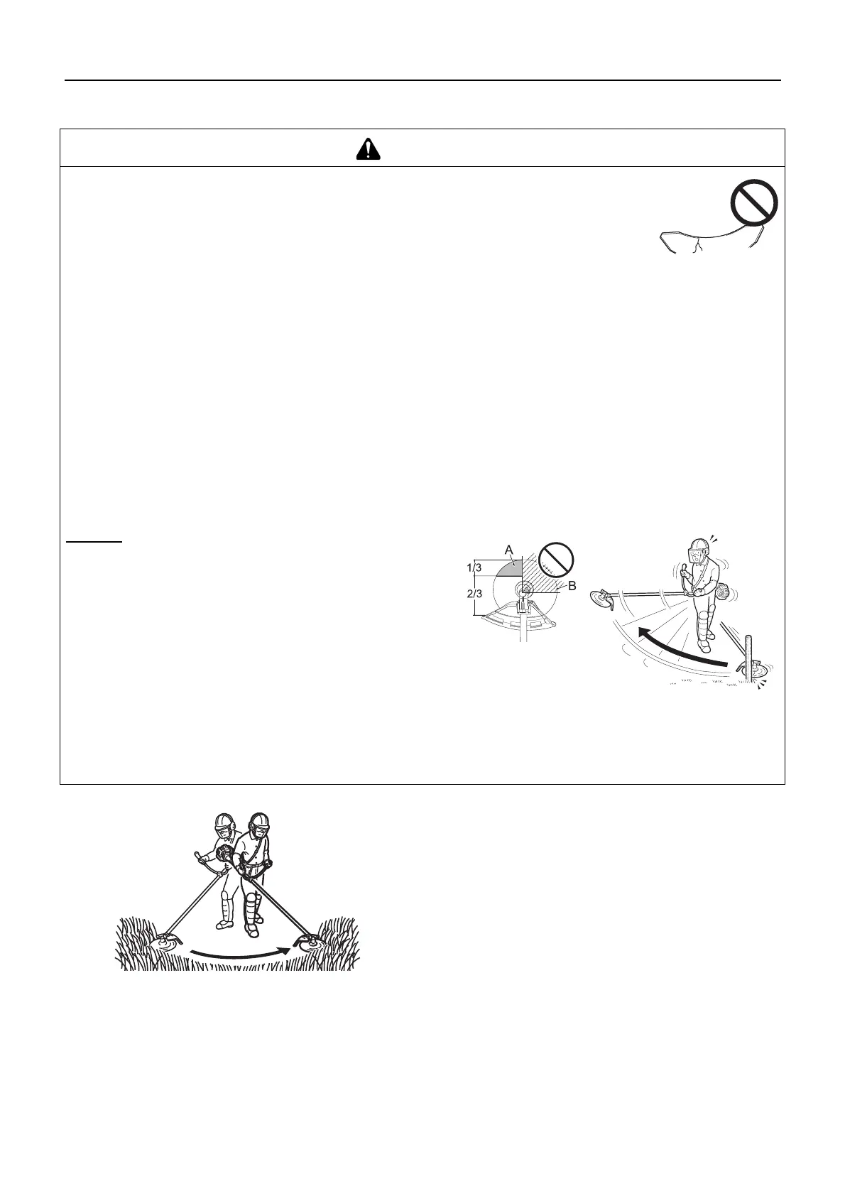 To prevent kickback, do not trim from left to right. Be careful to ensure that the trimmer blade does not strike any