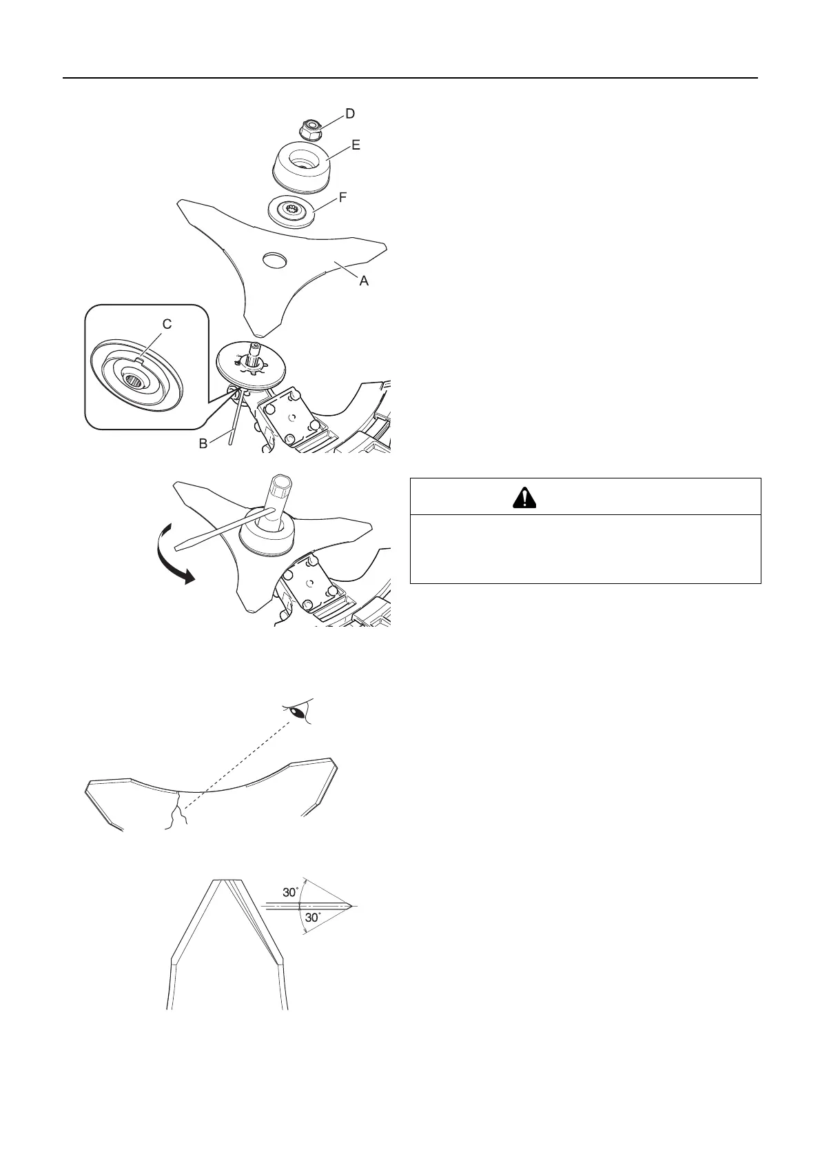 1. Examiner les lames (A) avant de les installer. Vérifier leur af-