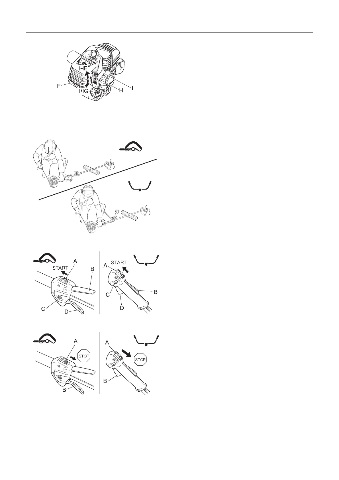 2. Assicurarsi che la leva del gas (D) sia in posizione di folle.